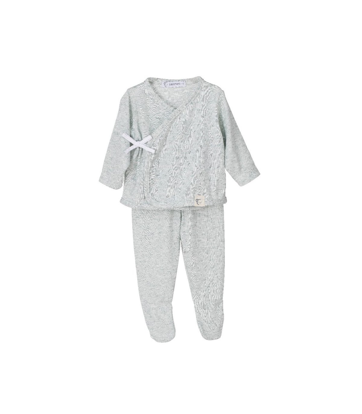 Pack regalo algodón Calamaro incluyen 4 piezas: el gorrito, el jubón cruzado por delante, la polaina y las manoplas. Es de algodón 100%, muy práctico para verano, ya que es fresquito y muy cómodo para llevar al hospital. Al ser de dos piezas es perfecto y práctico para cambiar al bebé y curarle el ombligo en los primeros días.