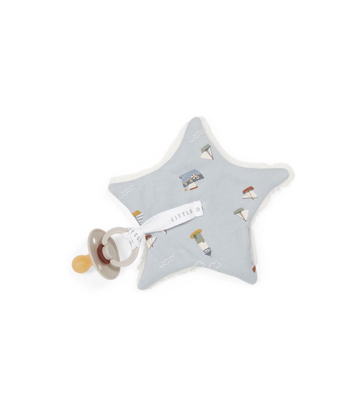 Descripción El chupetero para bebés y niños pequeños es muy suave y agradable para abrazarlo y jugar. Es más fácil encontrar el chupete cuando se ha caído o en la bolsa de pañales. La cinta facilita la sujeción del chupete al chupetero. Parte delantera de tela y parte trasera de tejido de peluche muy suave. Lavable a máquina. Tejido exterior 60% algodón/40% poliéster, interior poliéster.