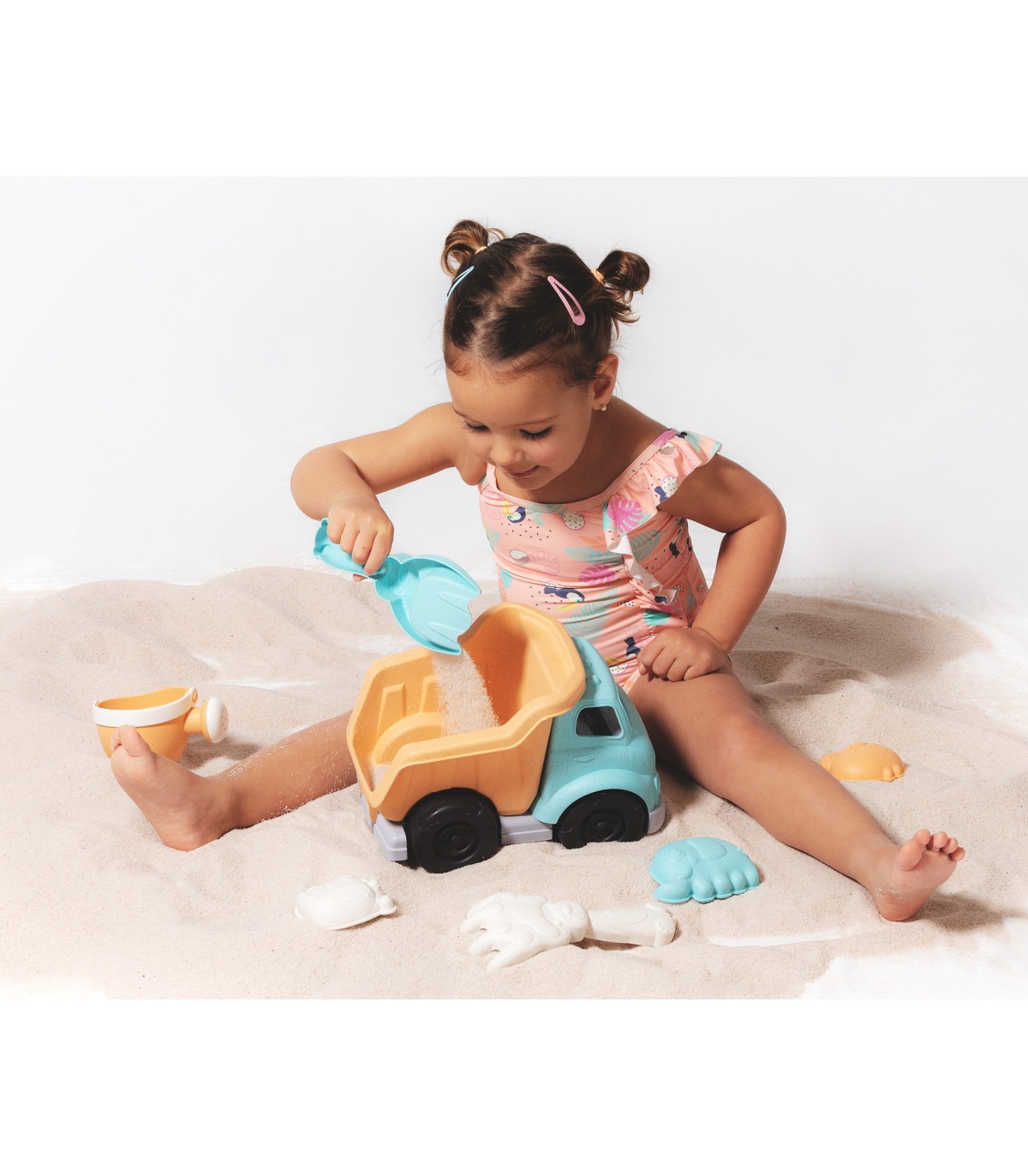 Preparados, listos, ¡ya!. ¿Nos vamos a la playa? Este set tiene un camión para recoger arena y llevarla en su remolque. Es súper divertido y fácil de mover, está diseñado especialmente para los más pequeños. Junto a este camión tan chulo hay un rastrillo, una pala, una regadera y tres moldes de animales para dibujar su relieve en la arena. Estas herramientas ayudarán a tu peque a cavar y moldear la arena con mayor facilidad. Este juego es el ideal para este verano, original y distinto a los demás. Para que tu hij@ deje volar su imaginación y se divierta. Tiene colores suaves y atractivos para llamar la atención de los niños y estimular su creatividad. Jugar con juegos de playa es una actividad beneficiosa para el desarrollo motor y cognitivo de los niños.