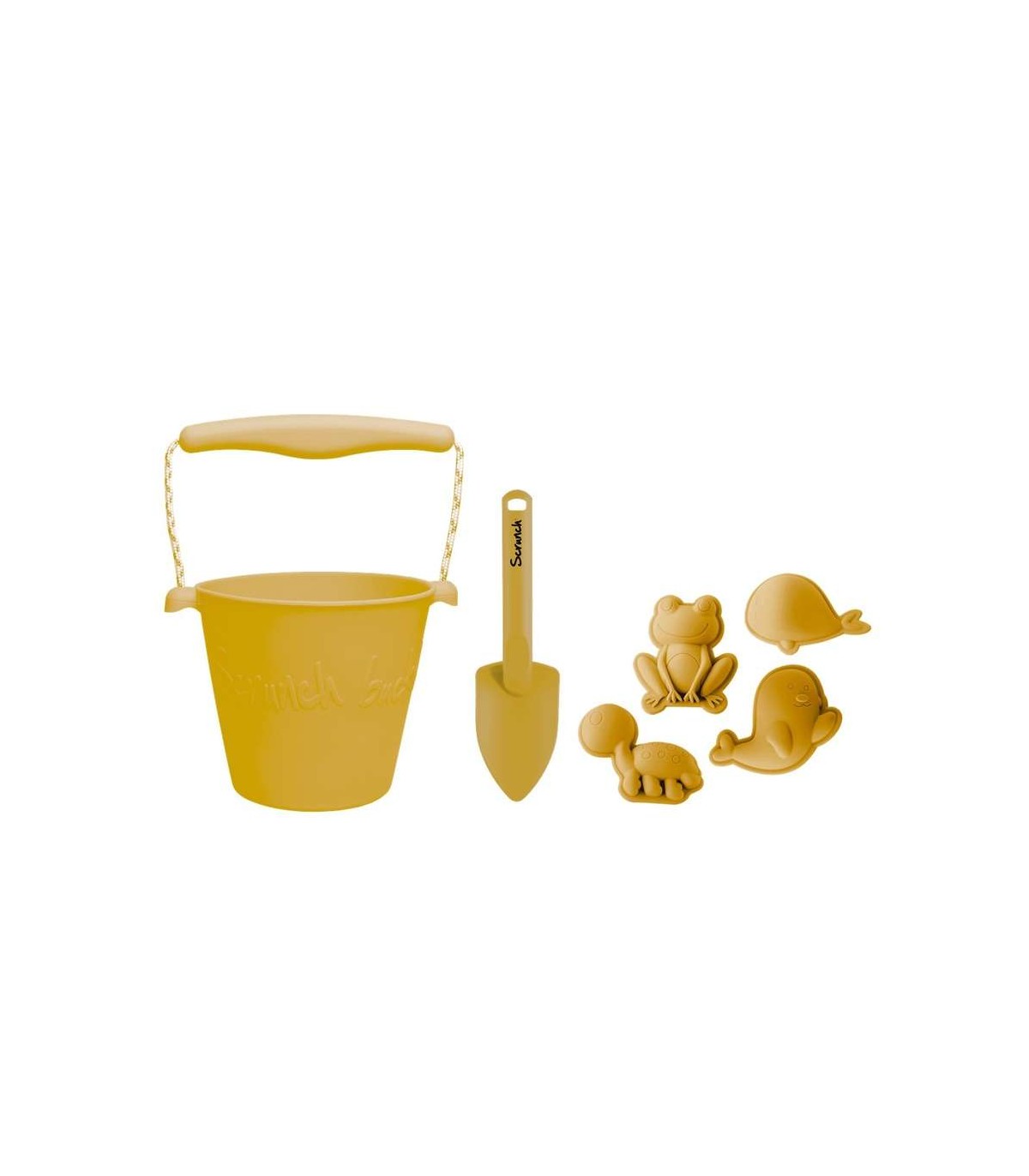 Set Cubo de playa, pala y moldes silicona Scrunch