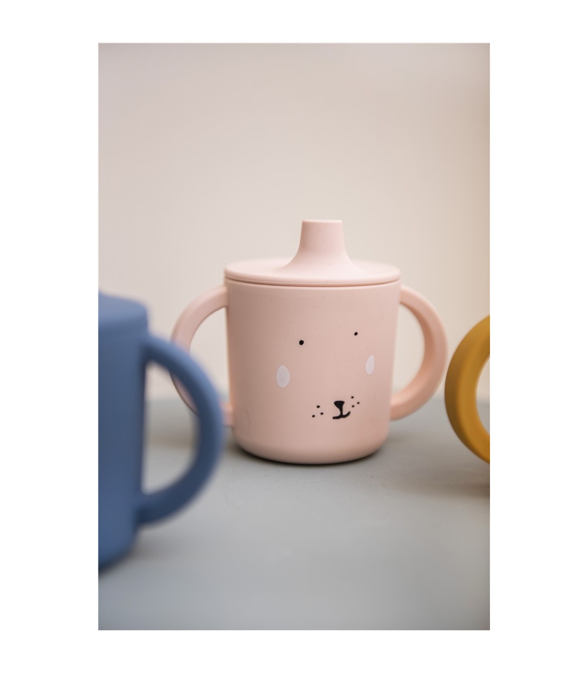Taza de silicona. No se puede romper, sin uso de químicos, se puede usar en lavavajillas, micro-ondas y horno.