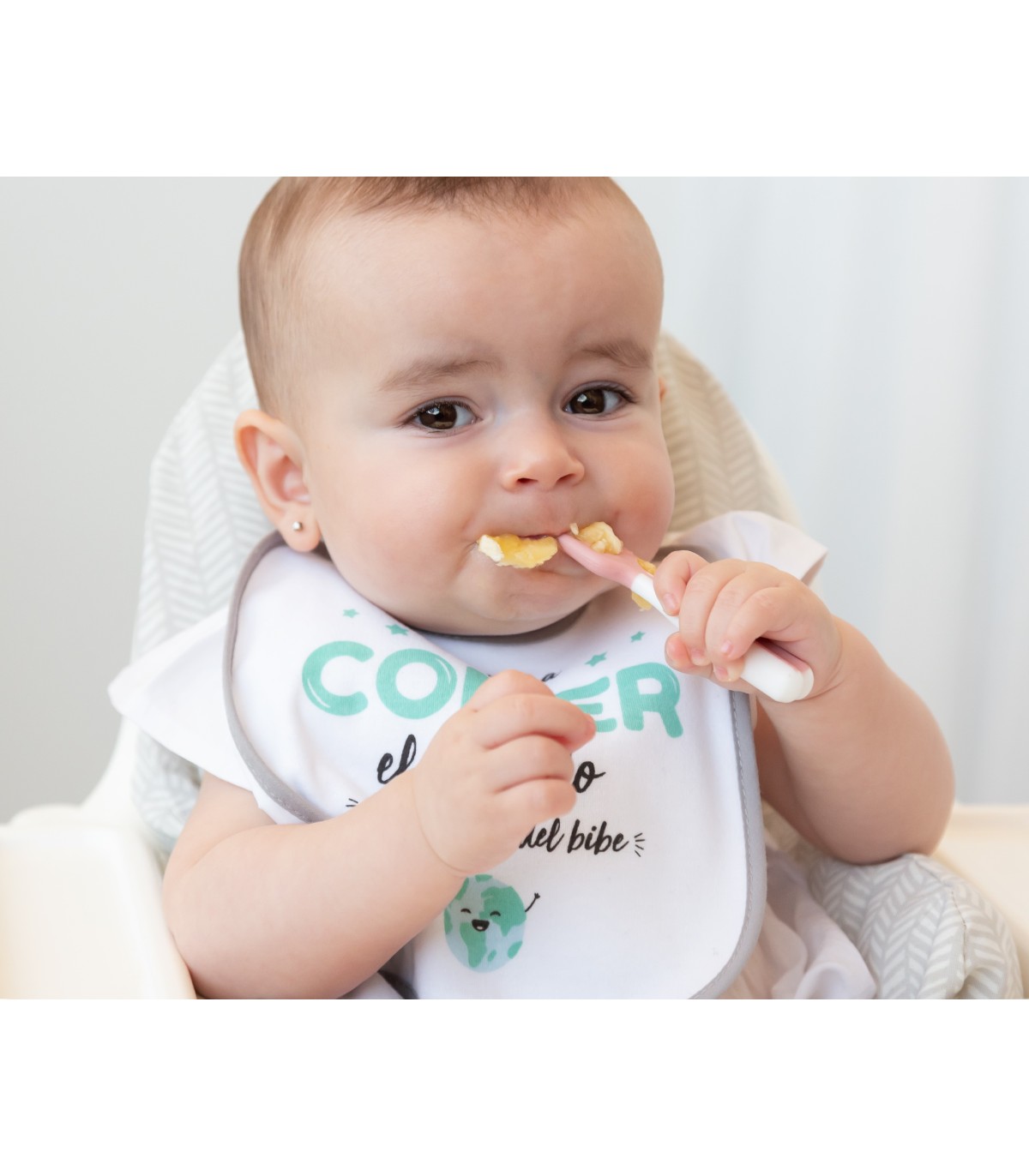 Con esta cuchara de entrenamiento, tu bebé tendrá la suficiente autonomía para comer solo. Está diseñada especialmente para los peques que empiezan a llevarse la cuchara a la boca pero aun no dominan el equilibrio necesario. Para ellos es una cuchara más fácil y cómoda, y sobre todo adaptada a sus movimientos y gestos, ya que con ella no se derraman los purés y los trocitos no deben ser pinchados, lo cual requeriría de mayor motricidad fina.