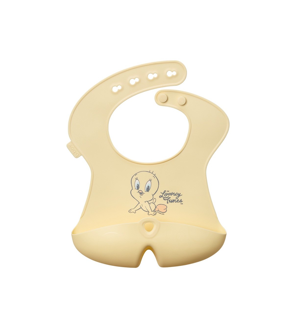 Babero práctico y enrollable de B.Box, cuenta con un bolsillo recogemigas, manteniendo al bebé más limpio, seco y cómodo durante las comidas.