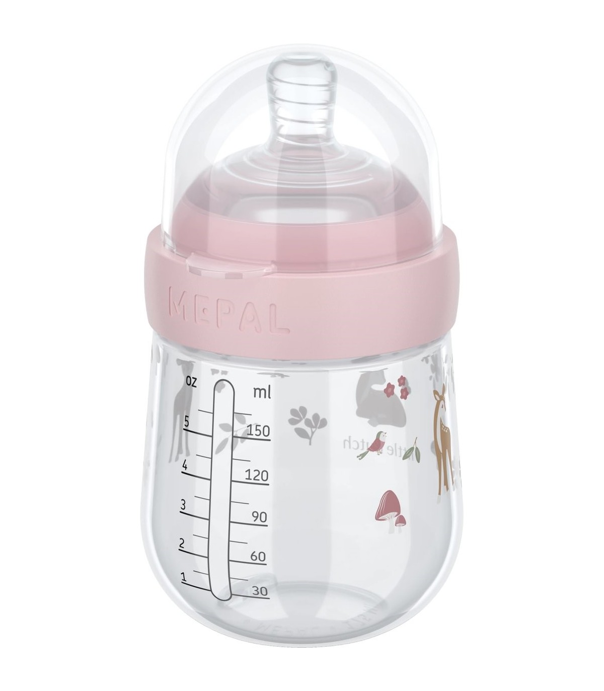 Biberón de 165 ml de la colección MIO, especialmente diseñado para evitar los cólicos, incluye tapa de sellado transparente para almacenar, el envase incluye medidas en ml y oz, libre de BPA. Diseño de la tetina en espiral para prevenir el bloqueo, fabricada en silicona de grado médico, tetina natural y ancha para facilitar el rellenado y la limpieza.