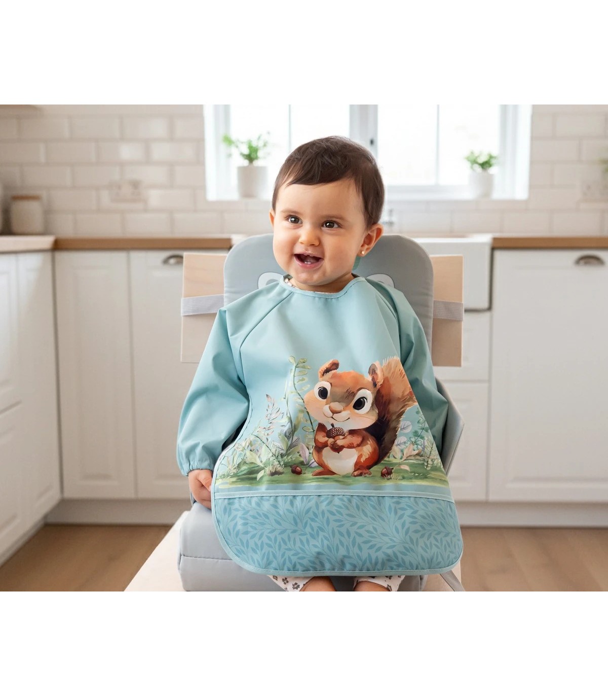 Babero impermeable con mangas ardilla verde
