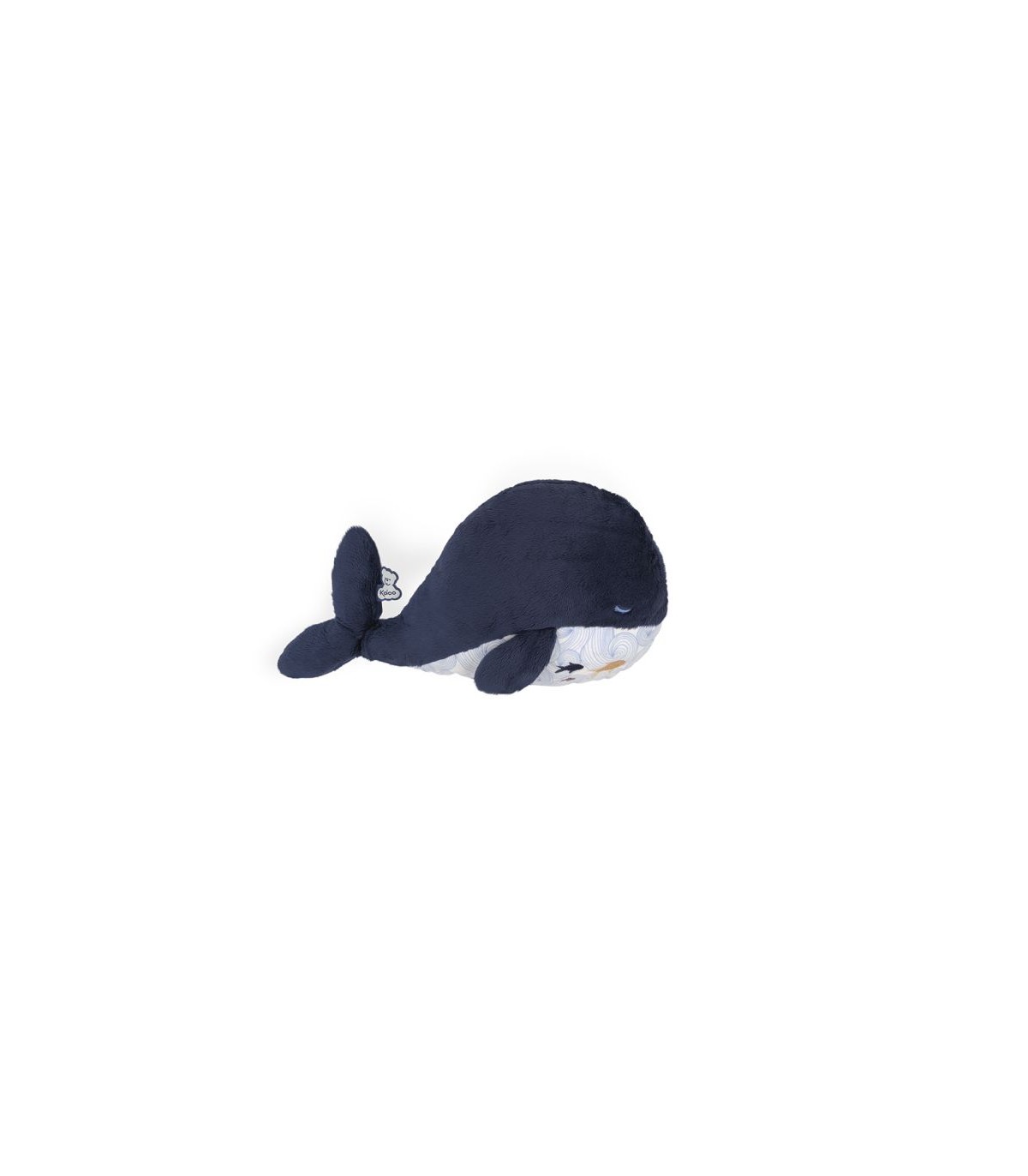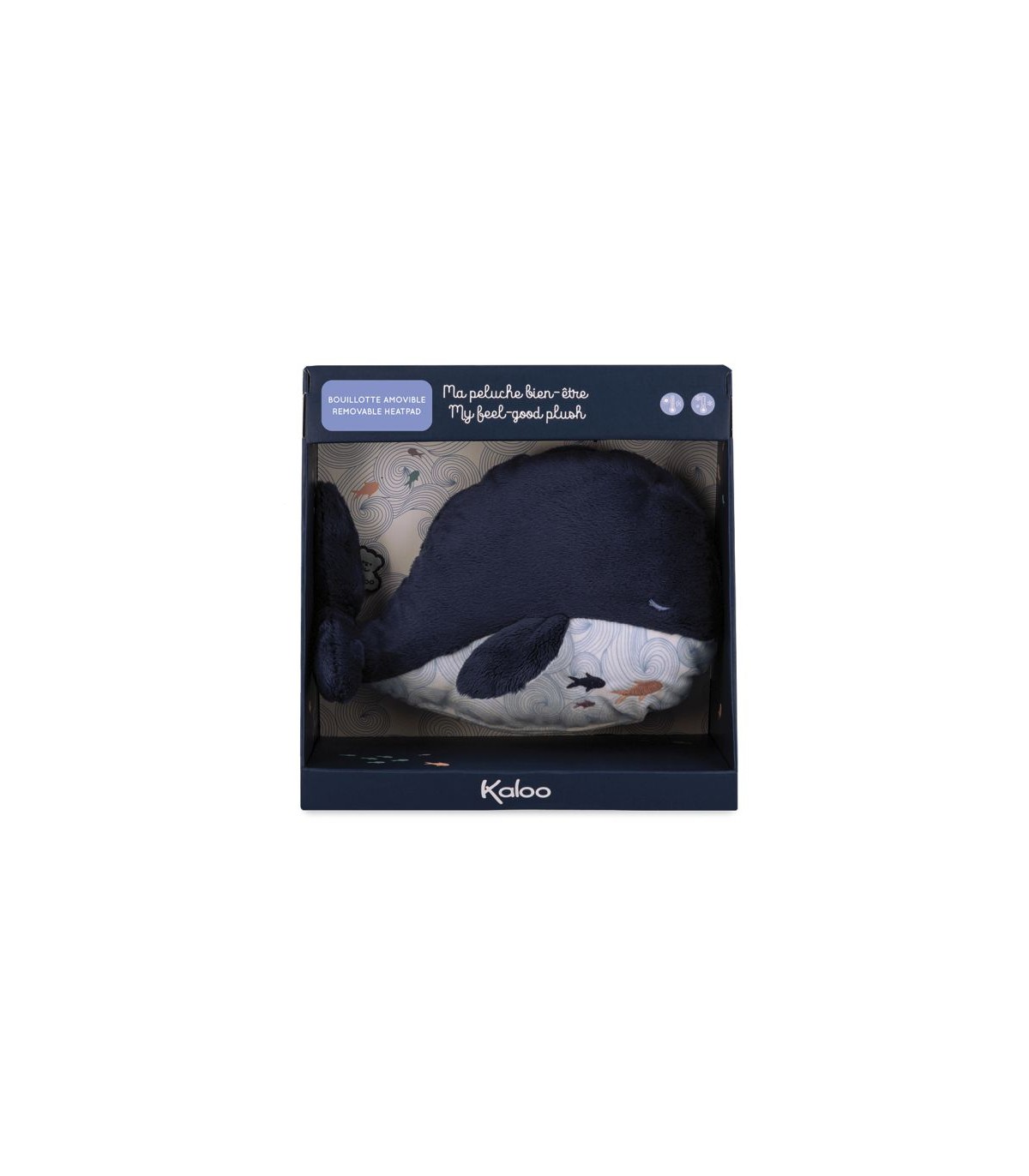Este cojín térmico natural con forma de ballena de peluche es ideal para aliviar las molestias del bebé desde el nacimiento. Es desenfundable y contiene una bolsa extraíble. El bolsillo lleno de bolas de arcilla y flores de lavanda debe colocarse en el microondas o congelador para un efecto caliente o frío. El acceso a la bolsa está asegurado gracias a un sistema de velcro para un uso seguro. Con su forro azul y suave, le dará al bebé tranquilidad y calma. Su vientre está recubierto con un estampado «danza de las olas» adornado con bordados de peces que recuerdan la calma de las profundidades del mar y la ola de suavidad y bienestar que aporta el peluche. Su generoso tamaño es ideal para dar calorcito a tu hijo en la cama y calmarlo. Sin bolsillo, sirve como peluche para mimos. Será el peluche reconfortante favorito del bebé. El cojín térmico tiene numerosos beneficios, especialmente el alivio temporal del dolor. La lavanda ayuda a conciliar el sueño gracias a sus propiedades calmantes y relajantes. Quite la bolsa antes del lavado a máquina. Se incluyen instrucciones de uso dentro del peluche. Tamaño: 16,5 cm x 31 cm