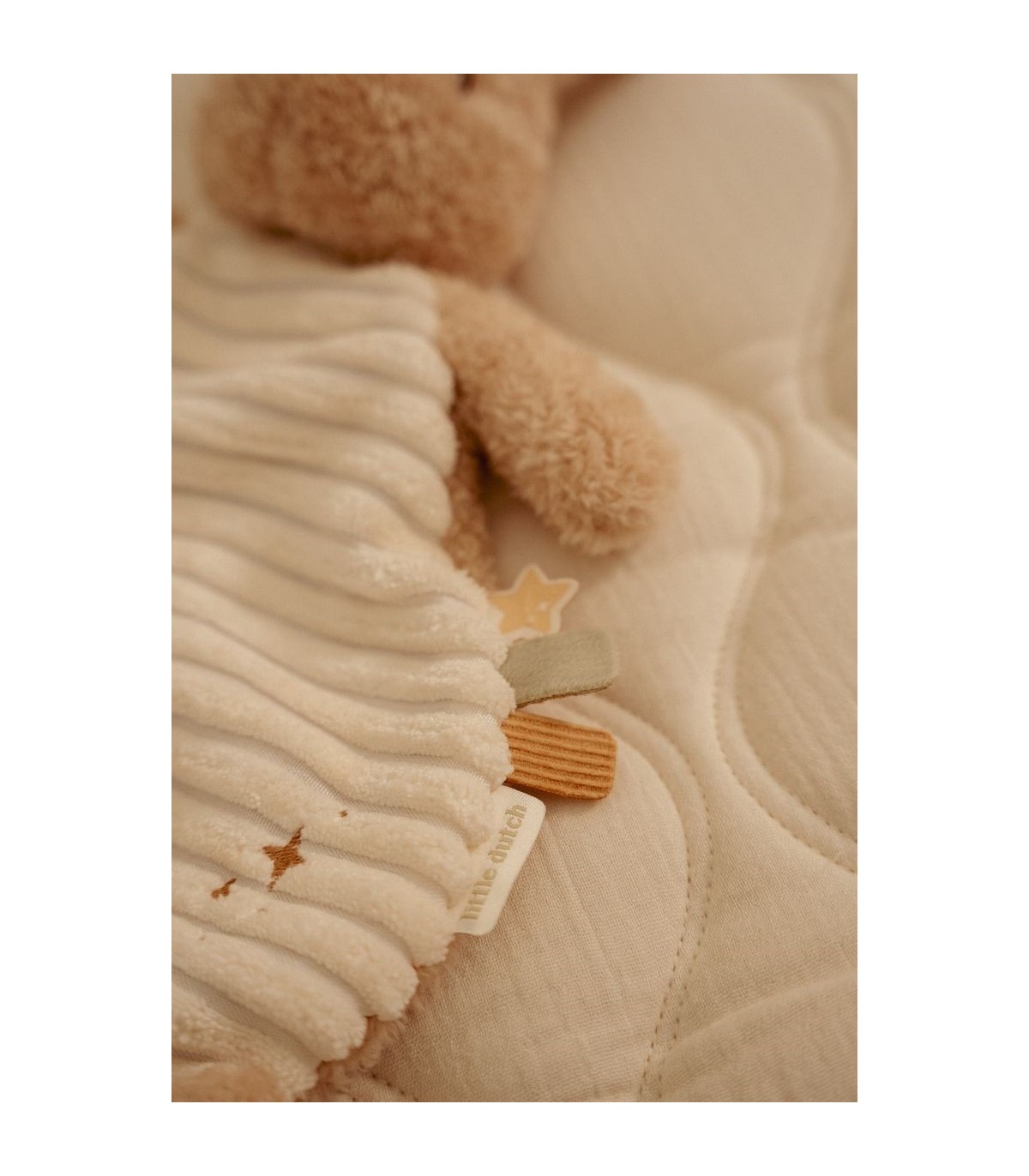 Suave, familiar y siempre cerca. Este doudou Newborn Naturals le brinda a tu pequeño una sensación de seguridad y paz. Hecha con telas maravillosamente suaves en tonos sutiles y naturales, perfecta para que sus pequeñas manos la agarren y exploren. Esta manta se convertirá rápidamente en un compañero de confort indispensable. Ideal para acurrucarse, calmarse y llevarla a todas partes.