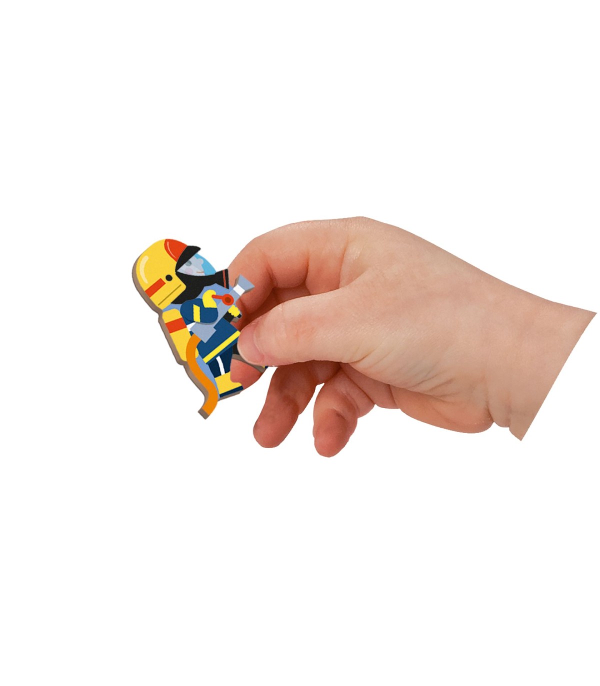 ¡Niiinoo, niiinooo! ¡El fuego se ha colado en los Magnéti’book! Este juego magnético hará las delicias de los niños a partir de 3 años, que se sentirán como auténticos bomberos. Este juego educativo estimulará la imaginación del pequeño, permitiéndole inventarse un montón de historias gracias a la escena magnética y a los 60 imanes para montar. Los niños son totalmente libres: pueden seguir los ejemplos incluidos o imaginarse sus propios personajes. Los imanes se pueden mezclar y la creatividad no tiene límites. Este libro magnético consta de 60 imanes y 18 tarjetas modelo con los colores de los bomberos y sus vehículos. Por tierra, aire o mar, el vehículo ideal para contrarrestar el fuego cobrará vida en manos del niño. Una vez creado, ¡soñará que está en plena acción! El formato libro es muy práctico, fácilmente transportable para que su imaginación no se detenga en la puerta de casa. Estas piezas diseñadas para las manitas de los niños les ayudarán a perfeccionar su motricidad. Este estuche magnético se suma a la gran familia de los Magnéti'book, unos juguetes magnéticos que despiertan la curiosidad y la creatividad. Este juego educativo magnético está fabricado con cartón con certificado FSC™ y materiales homologados.