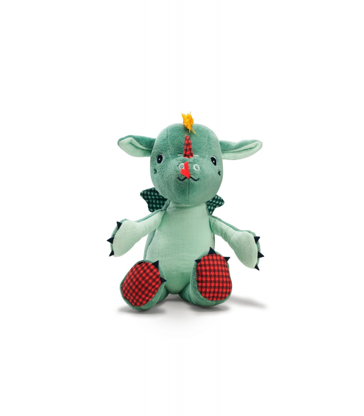¡A Joe el dragón le encantan la magia y la cocina, pero su tercera pasión son los mimos! Y le hará todos los que quiera a su futuro dueño. Travieso y juguetón, siempre estará junto al pequeño para cuidar de él y hacerle reír.  Joe, con sus tonos verdes y su bonita carita, quedará precioso como adorno en el cuarto del bebé, al que hará compañía por las noches. Este peluche para abrazar viene en una bonita caja de regalo ilustrada que luego puede servir para guardarlo.
