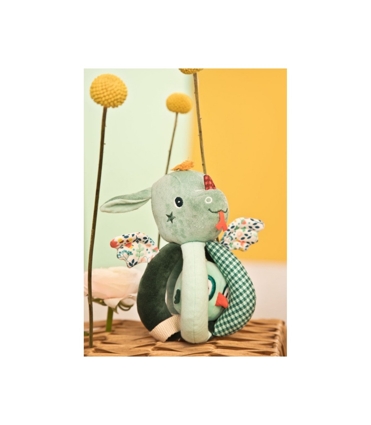¡Joe tiene un montón de amigos en el bosque encantado, pero su mejor amigo es un búho! Siempre le acompaña en sus aventuras y juntos pasan ratos increíbles. Y Joe suele protegerle: ¿dónde lo habrá escondido? Este original sonajero hará las delicias del bebé. Es fácil de agarrar con sus manitas y estimula los sentidos de los más pequeños con las distintas texturas de las asas del sonajero.  ¡Y es muy fácil sacar la lechuza que se refugia dentro de Joe el dragón y volver a esconderla tantas veces como se quiera para divertirse sin parar! Este sonajero de asas está pensado para bebés a partir de 6 meses.