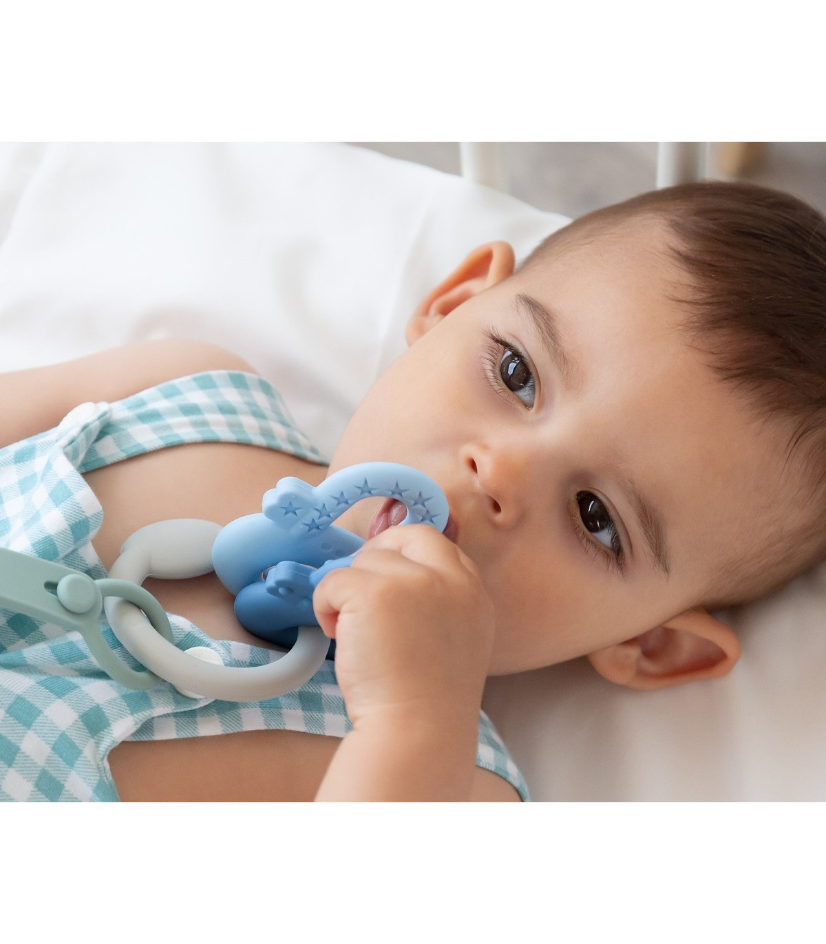 Este mordedor 100% de silicona de alta calidad, será a partir de ahora el juguete favorito de tu bebé. Puede morderlo sin peligro ya que está libre de BPA y ftalatos. Fabricados en una sola pieza, son suaves y flexibles. La silicona ofrece numerosas ventajas: no absorben olores ni sabores y su forma y textura se mantienen inalteradas con el uso y el contacto con otras sustancias.