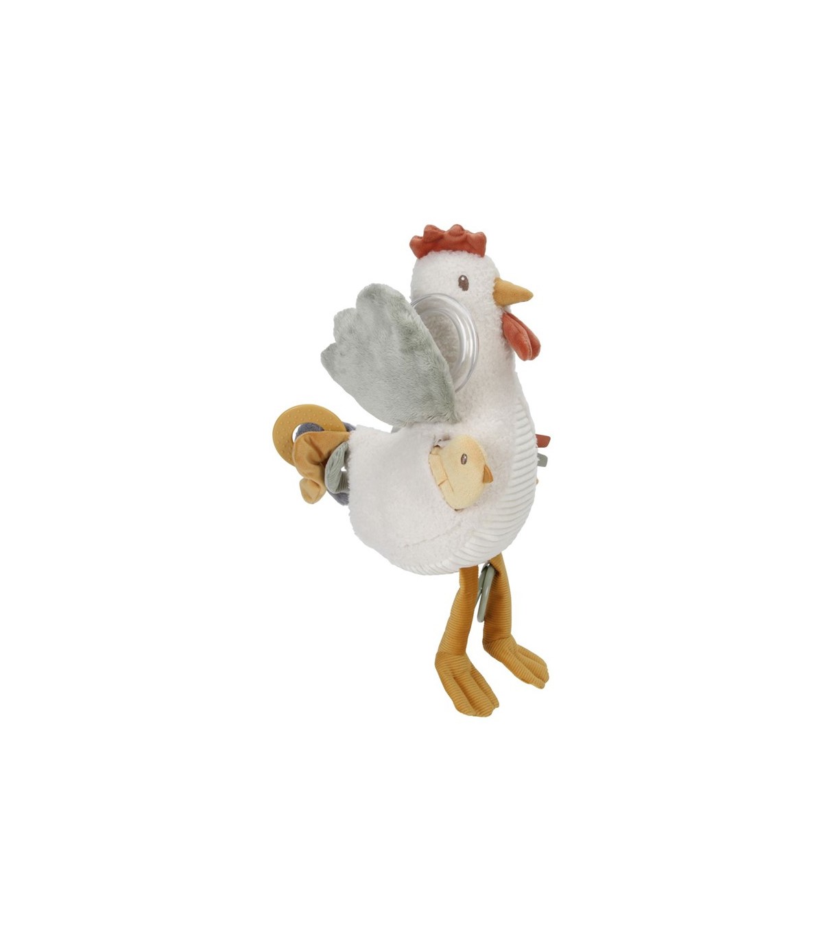 Esta gallina podrá ser tu nueva mejor amiga, hay mucho que ver y descubrir en este juguete de actividades en forma de gallina. Desde sus bonitas alas crujientes pasando por sus sonidos tintineantes hasta las etiquetas para agarrar. Esta simpática gallina definitivamente estimulará la curiosidad de tu niño.