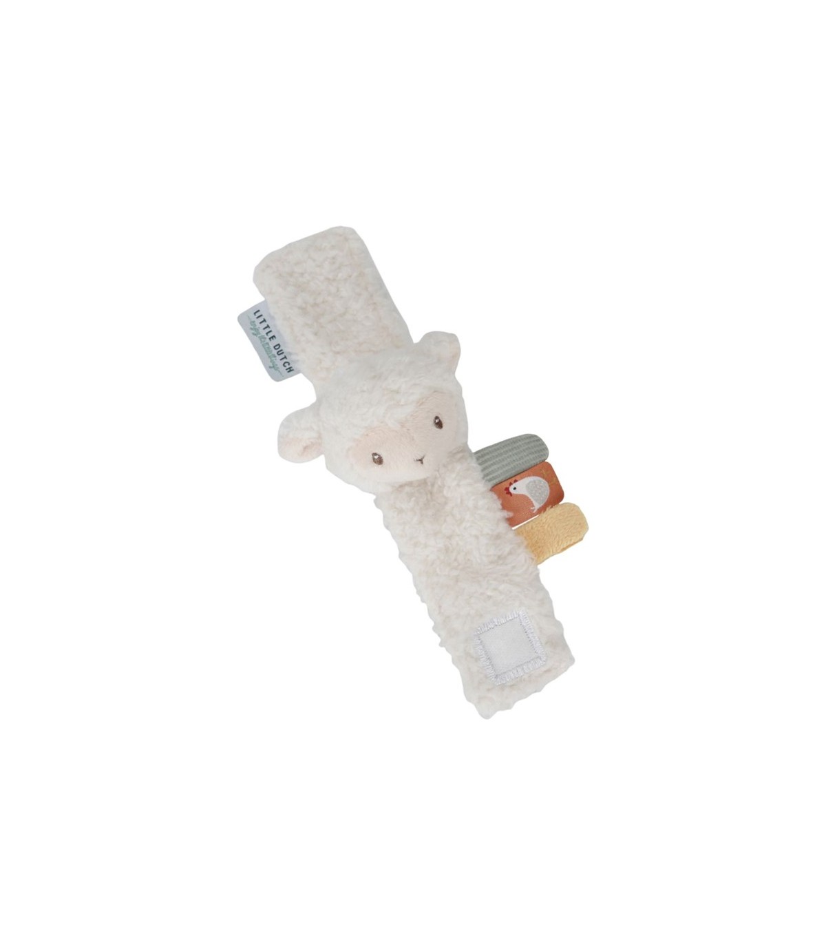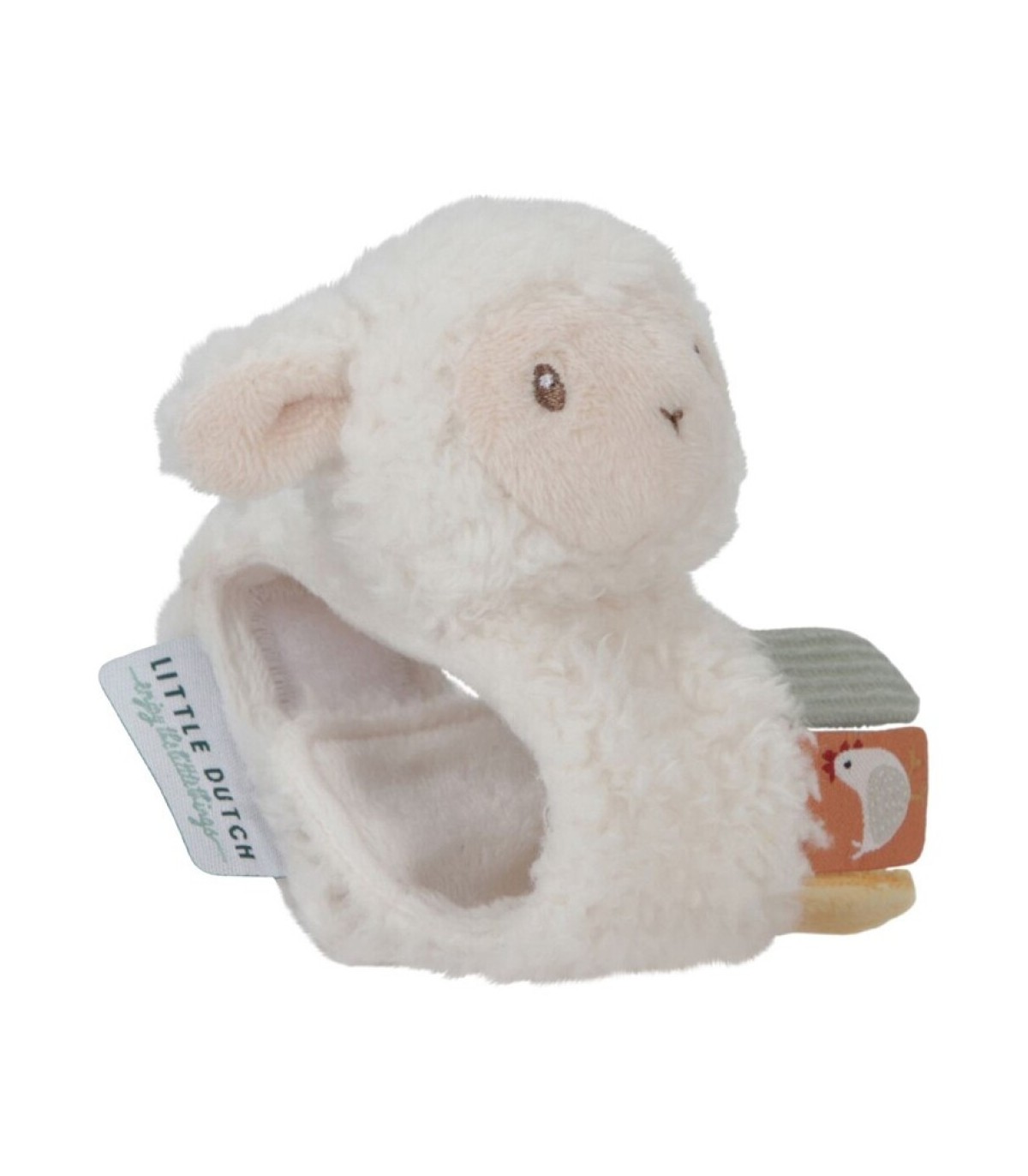 ¡Agita tus manos y alucina! Este suave sonajero de pulsera alegrará a tu bebé. Átalo alrededor de la muñeca de tu bebé, hazlo sonar y empieza la diversión. La suave ovejita de la pulsera está listo para moverse, pero hay mucho más que explorar, partes crujientes, etiquetas y pequeños nudos animan a agarrar y tocar. Un juguete maravilloso para un bebé feliz.