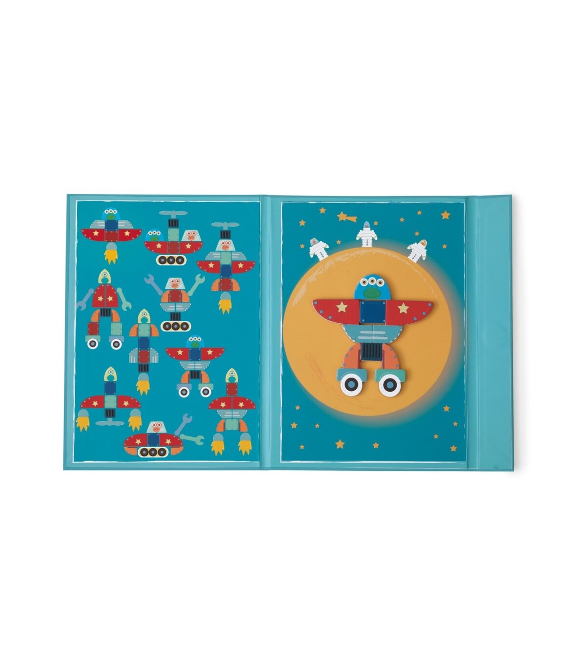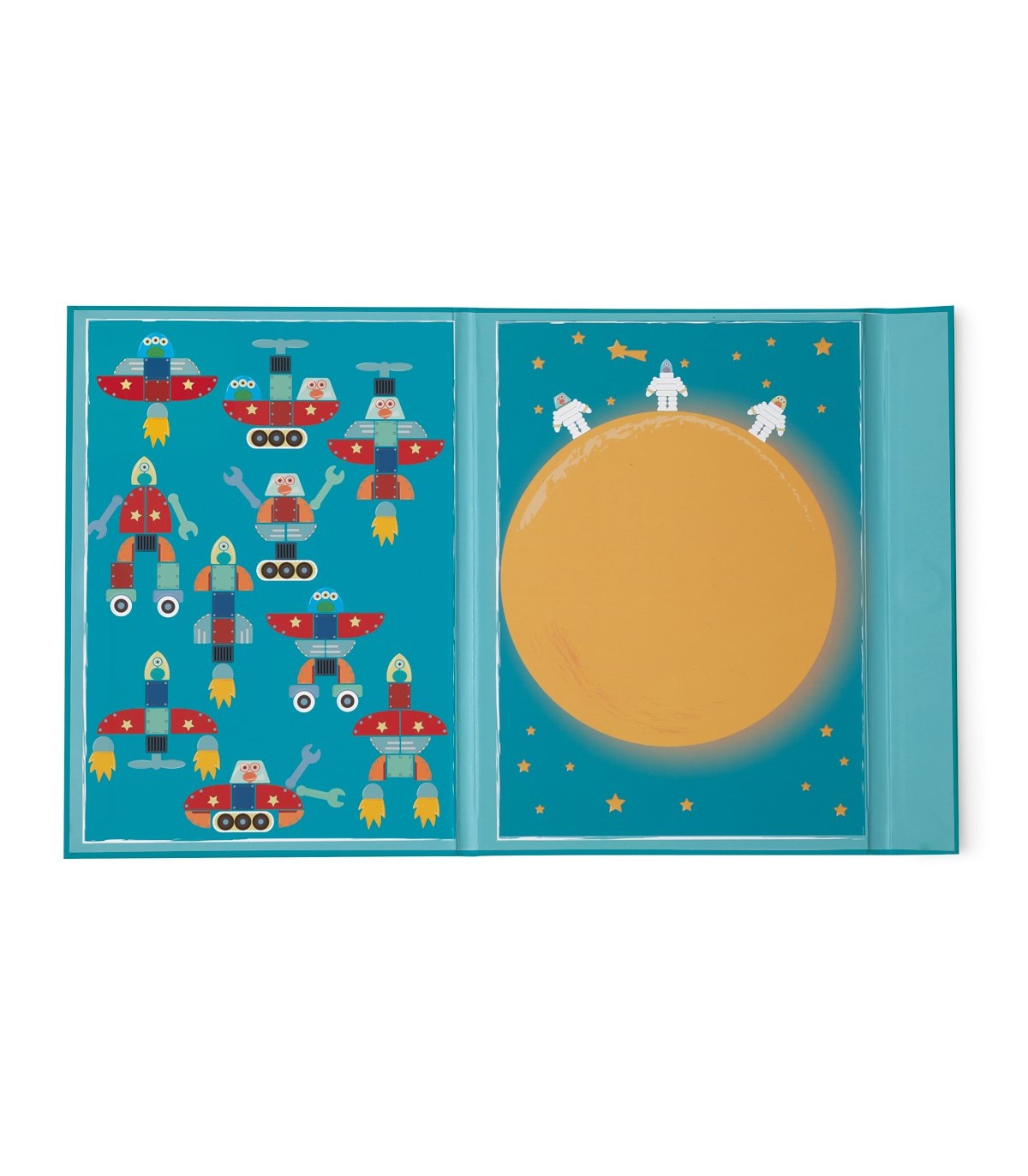 Descripción Embárcate en una fascinante aventura espacial con este libro plano magnético educativo. Intenta recrear las 10 naves espaciales diferentes que ves en la solapa izquierda del libro con los imanes en la solapa derecha del libro. ¡Usa tu propia imaginación para crear muchas otras combinaciones!51,5 x 25,6 x 1 cm