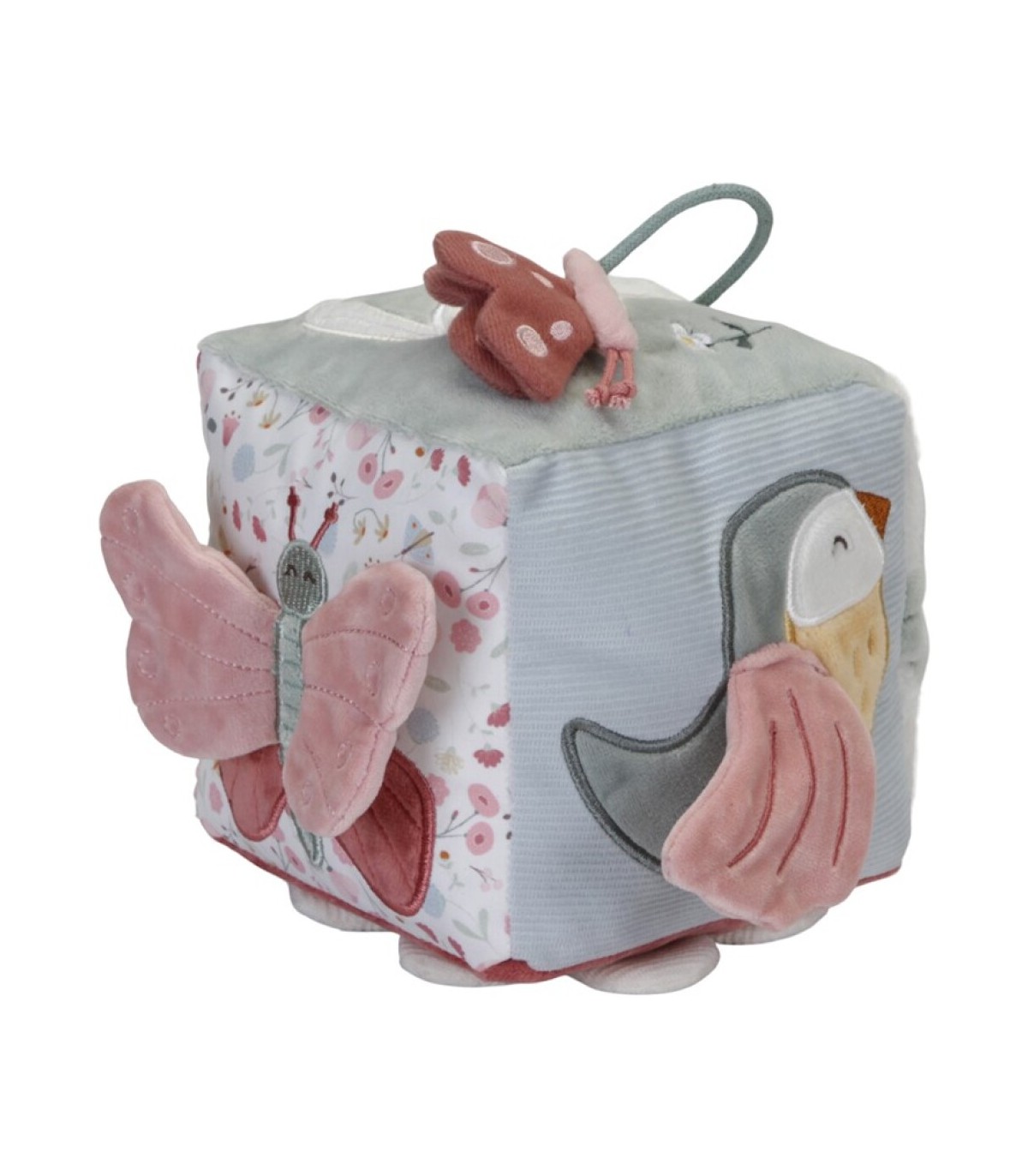 Descripción Explora la naturaleza con el pajarito Abby y sus amigos. Representado en una matriz de atractivos tonos, este cubo de actividades super suave despertará la curiosidad de su bebé. Cada lado presenta una actividad diferente y se viste de varias texturas, formas y características estimulantes. El cubo se puede agarrar y girar y viene con un espejo floreciente para el autodescubrimiento. Consigue un incansable entretenimiento mientras desarrolla los los sentidos del niño.