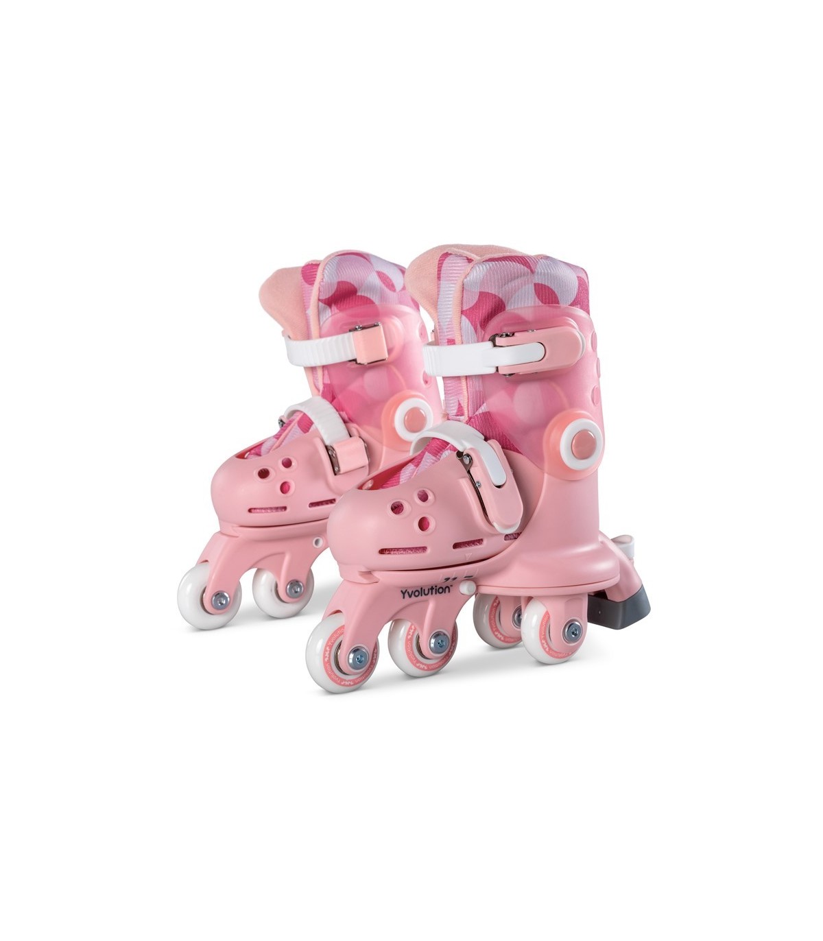 | Descripción | Los patines Yvolution Twista son patines de ruedas para niños pequeños. Ajustable hasta en 4 tallas (de la 24 a la 28) con una simple pulsación, te será fácil ponértelas y descubrir las primeras sensaciones de deslizamiento. Las ruedas traseras modulares en línea o en paralelo evolucionan sin herramientas y ofrecen una estabilidad adaptada al progreso del niño.Lleva un mecanismo evolutivo para cambiar de 2 ruedas laterales a ruedas en línea sin herramientas |