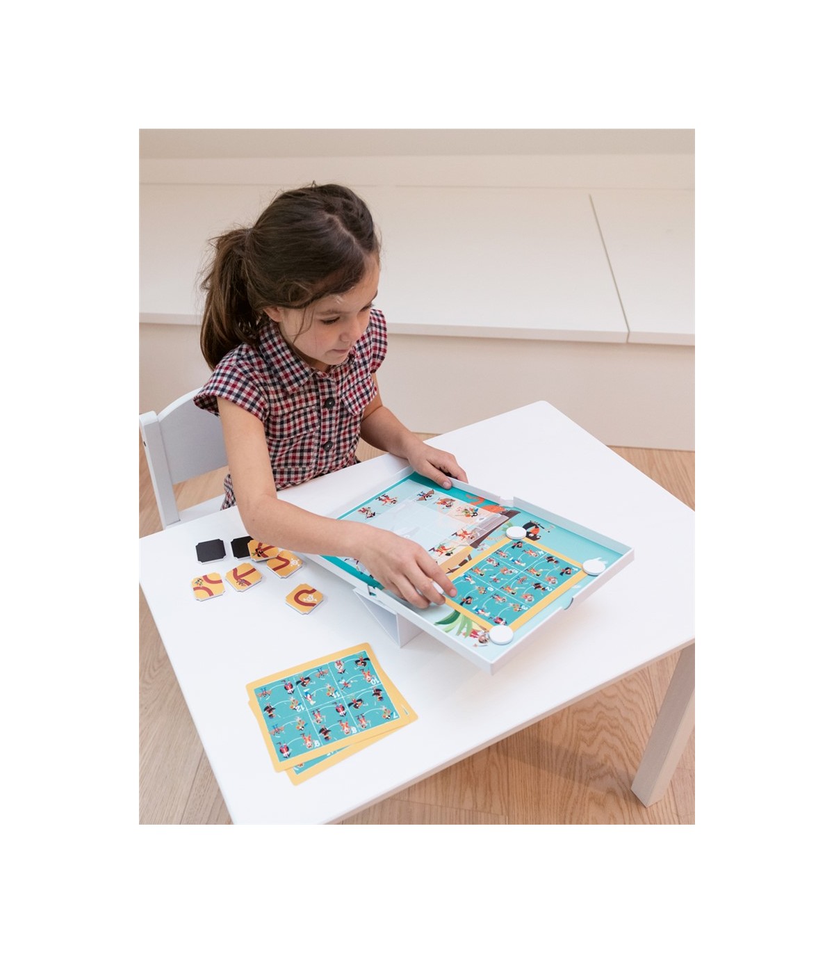 Descripción Combina todas las piezas magnéticas para construir un camino para el reto de los piratas. Desarrolla el pensamiento lógico, la visión espacial y las direcciones. Tiene 20 retos diferentes para dos niveles.