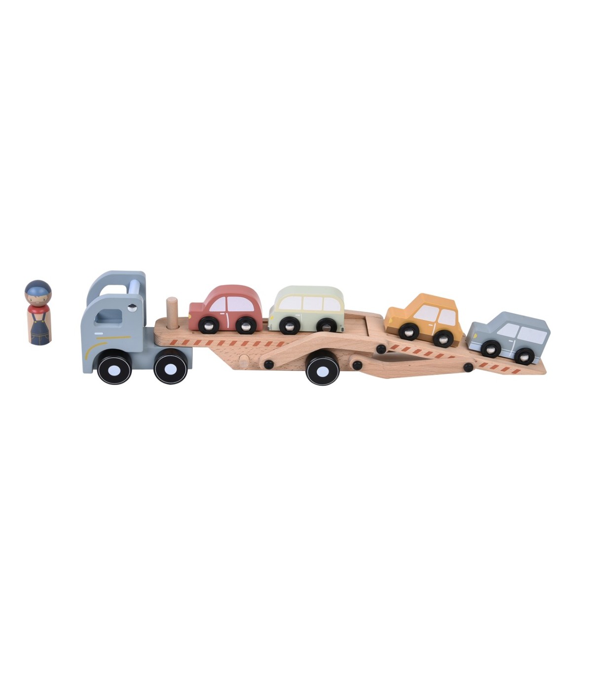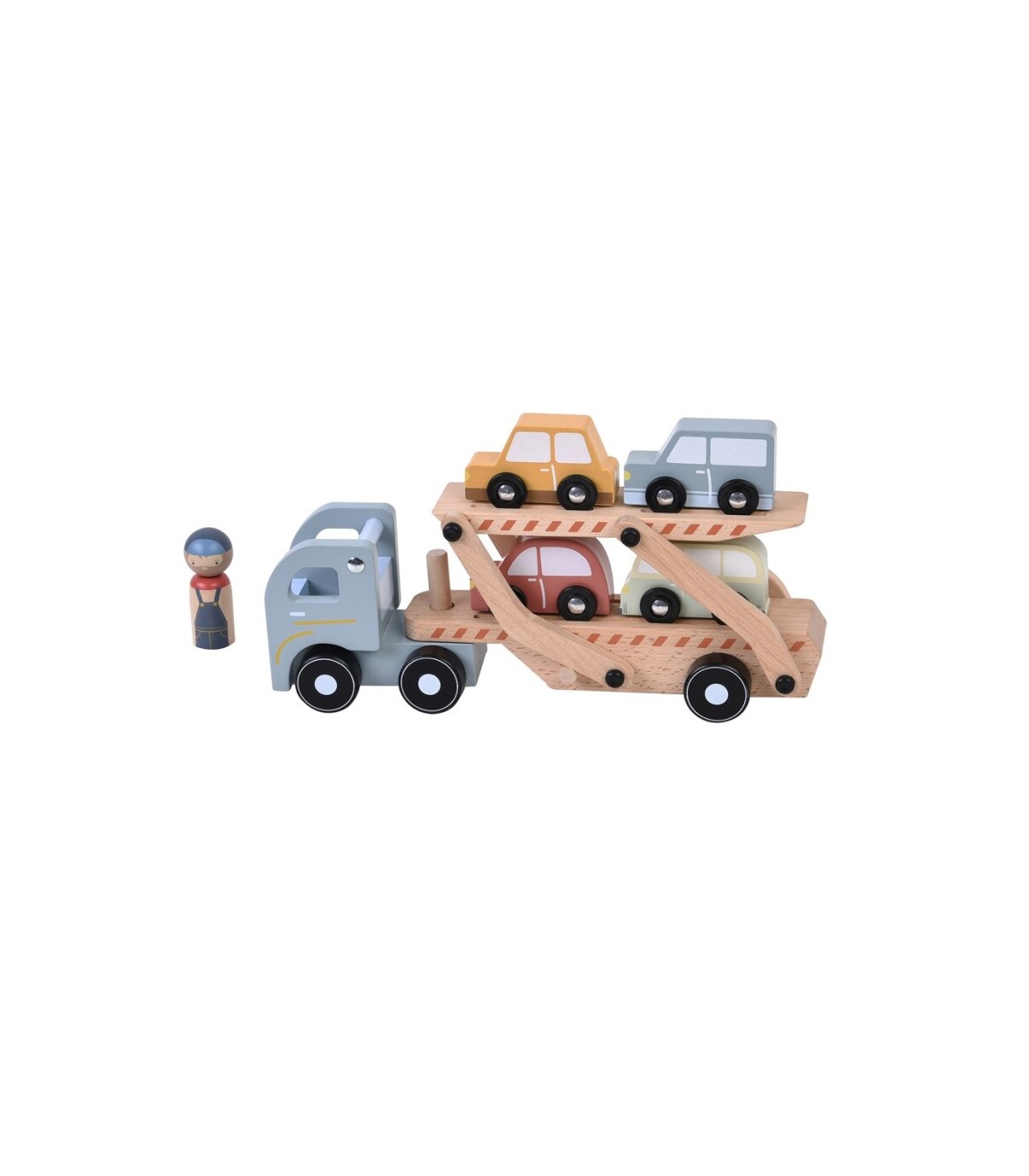 Descripción ¡Oh no! Problemas con el coche en la carretera. Por suerte, llevar los 4 vehículos incluidos al garaje no supone ningún problema para este camión de madera. ¿Ayudarás a cargar los coches en el camión a través del remolque? De esa manera, el conductor del camión puede ponerse a trabajar rápidamente. ¡Un verdadero imprescindible para los fanáticos de los coches más pequeños!