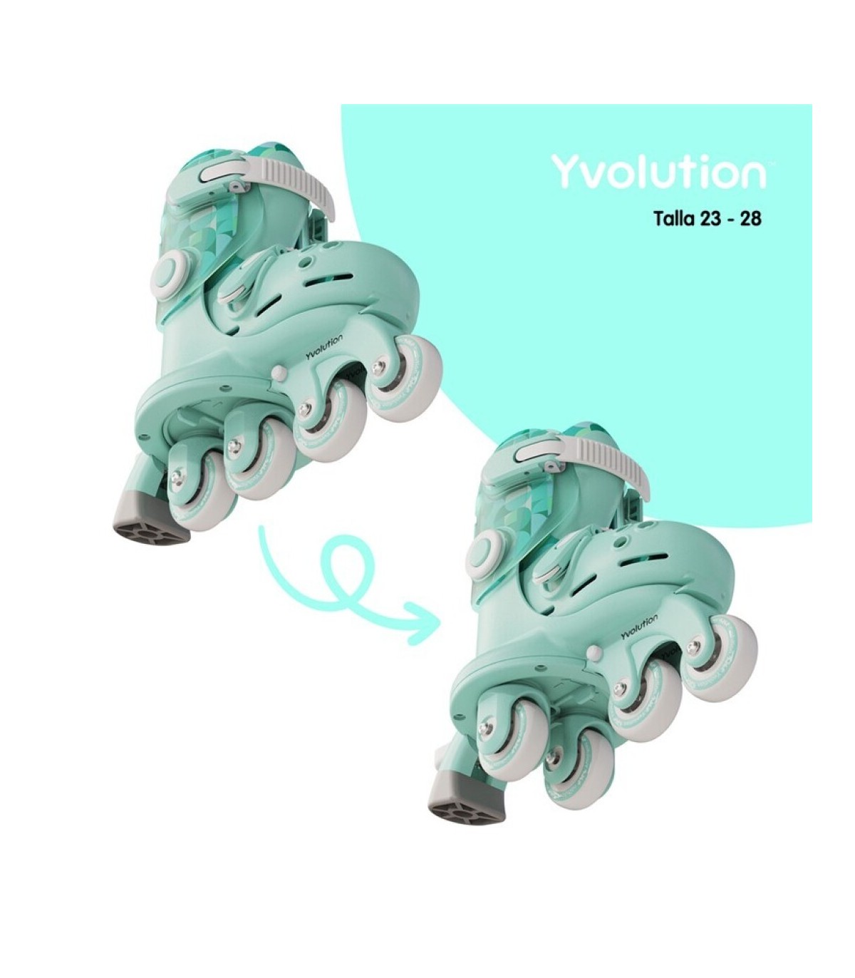 Los patines Yvolution Twista son patines de ruedas para niños pequeños. Ajustable hasta en 4 tallas con una simple pulsación, te será fácil ponértelas y descubrir las primeras sensaciones de deslizamiento. Las ruedas traseras modulares en línea o en paralelo evolucionan sin herramientas y ofrecen una estabilidad adaptada al progreso del niño. Lleva un mecanismo evolutivo para cambiar de 2 ruedas laterales a ruedas en línea sin herramientas