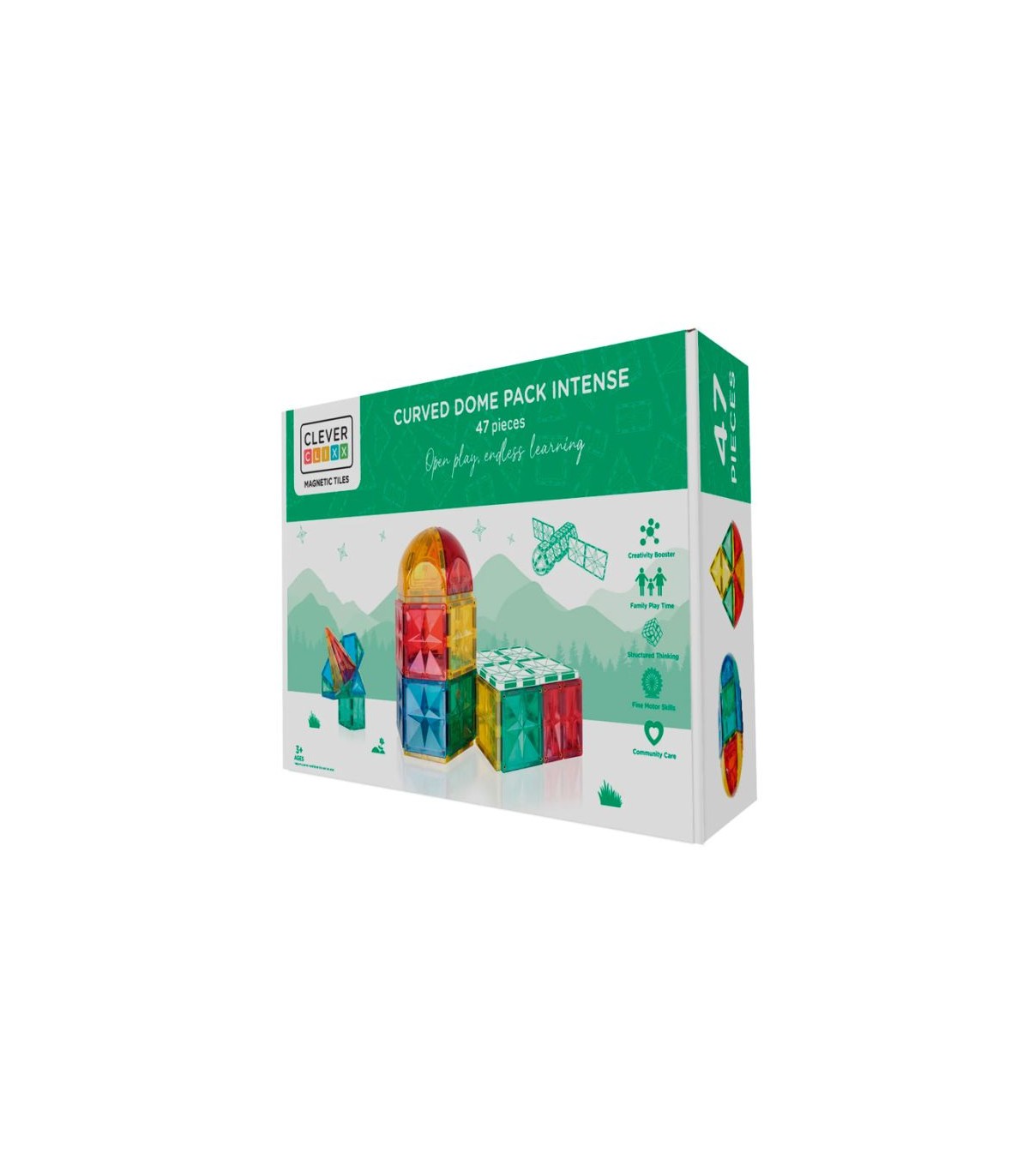 Juego de construcción magnético Curved Dome Pack Intense con 47 piezas translúcidas de colores, de Cleverclixx.
