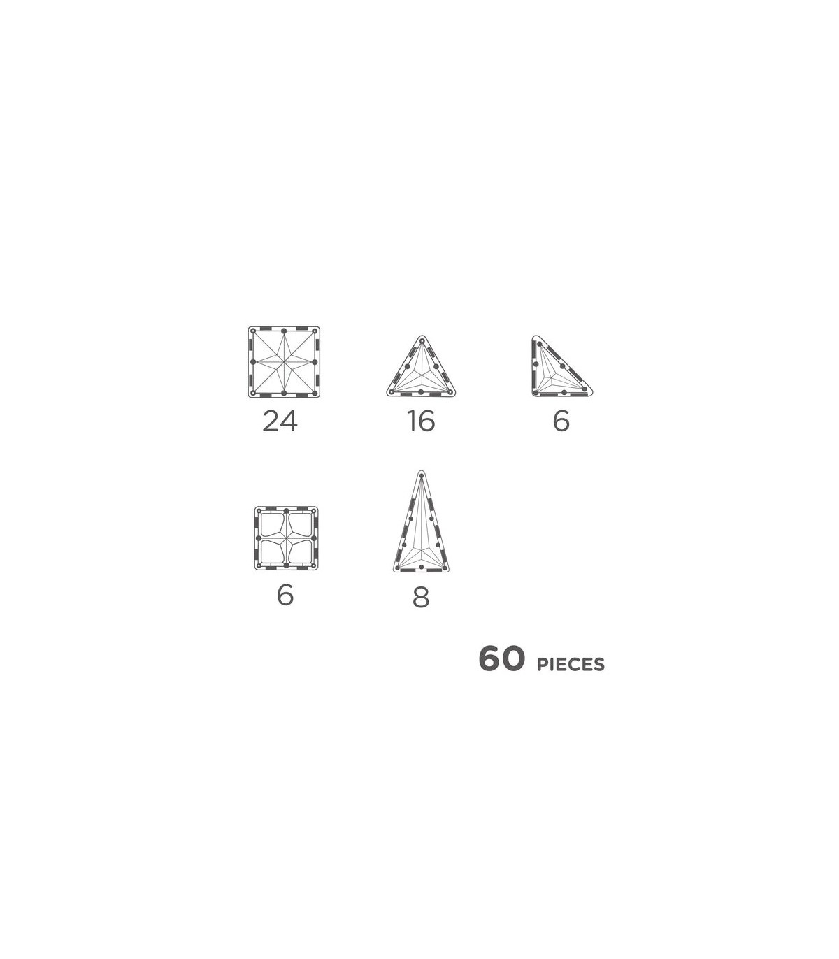 Juego de 60 piezas magnéticas de colores para llevar tu creatividad al máximo.