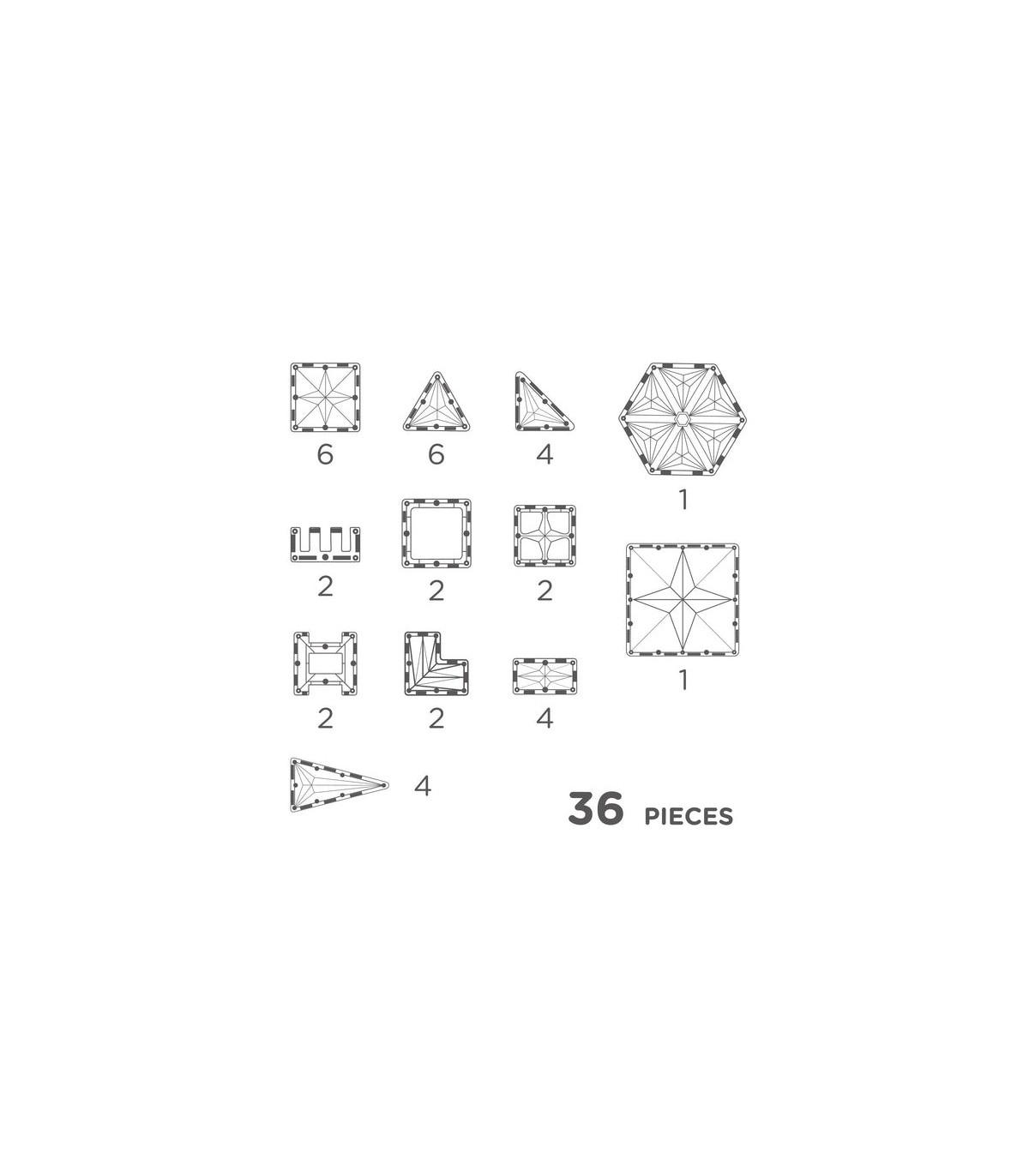 Juego de 36 piezas magnéticas de colores para llevar tu creatividad al máximo.