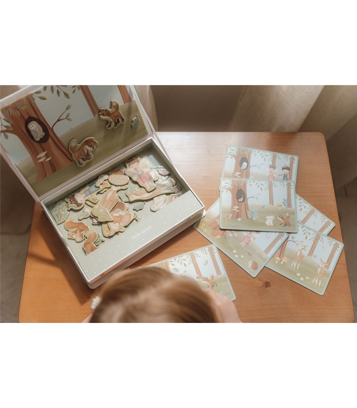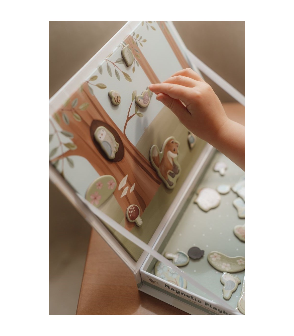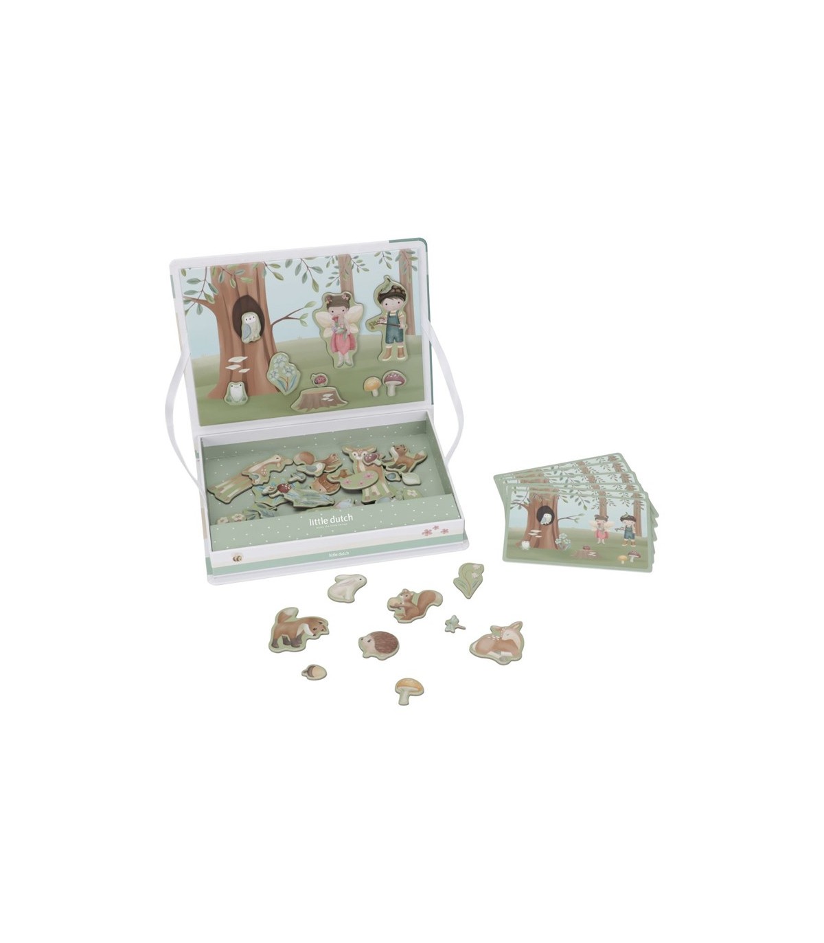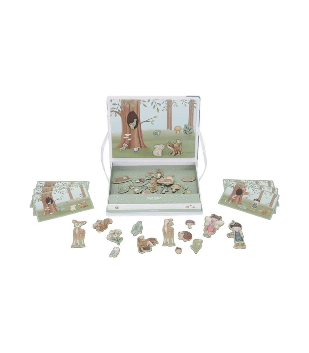 ¡Explora las maravillas del bosque encantado con este tablero de juego magnético! Descubre la magia que se esconde en su interior mientras replicas las tarjetas suministradas colocando los imanes en las posiciones correctas. O deja volar tu imaginación y crea tu propia aventura en el bosque. Con el tablero de juego magnético, crear tu propia historia es muy fácil. ¡Perfecto para despertar la creatividad y también para un regalo encantador! ADVERTENCIA: No apto para niños menores de 3 años debido a que contiene piezas pequeñas. Peligro de asfixia.