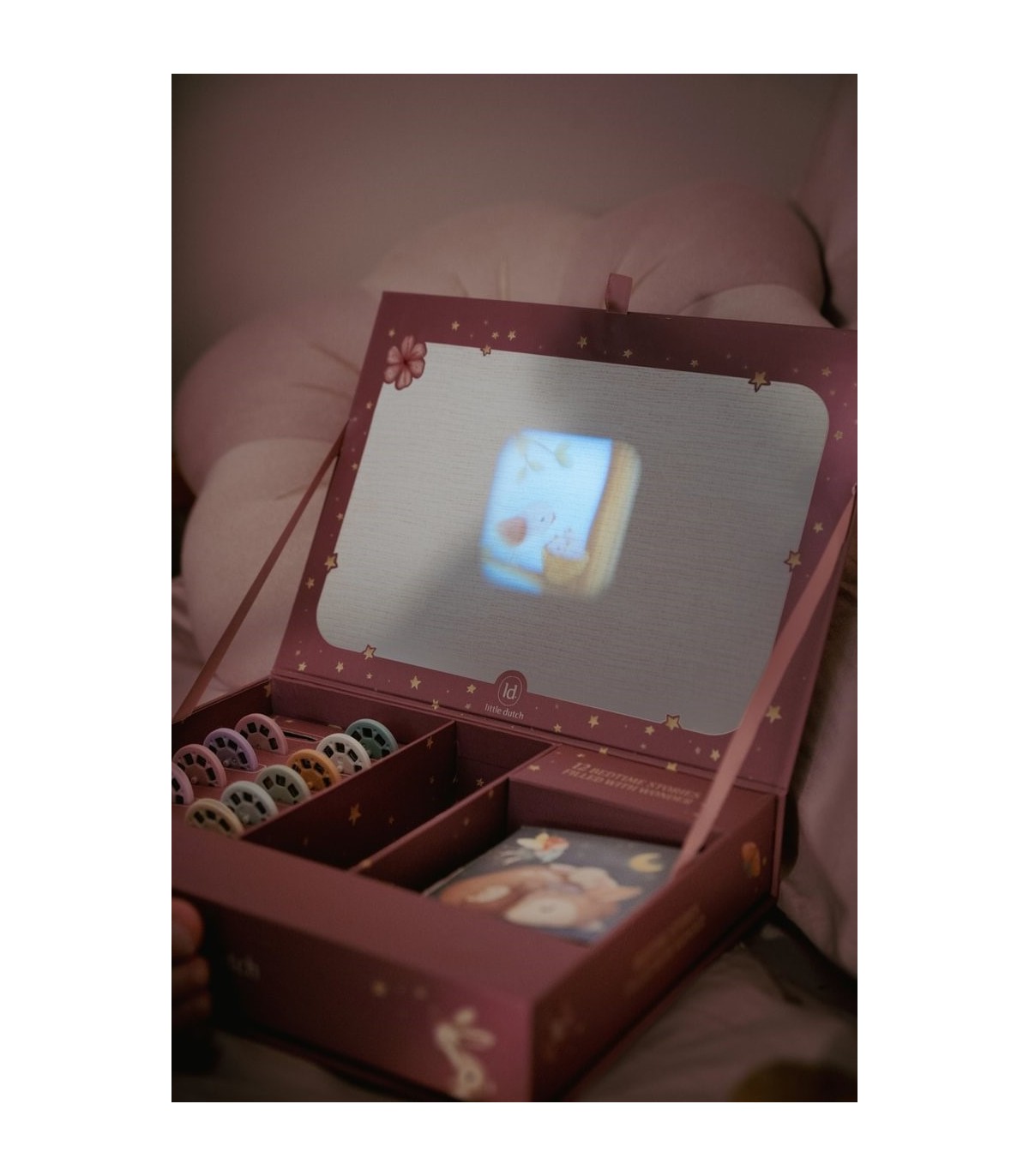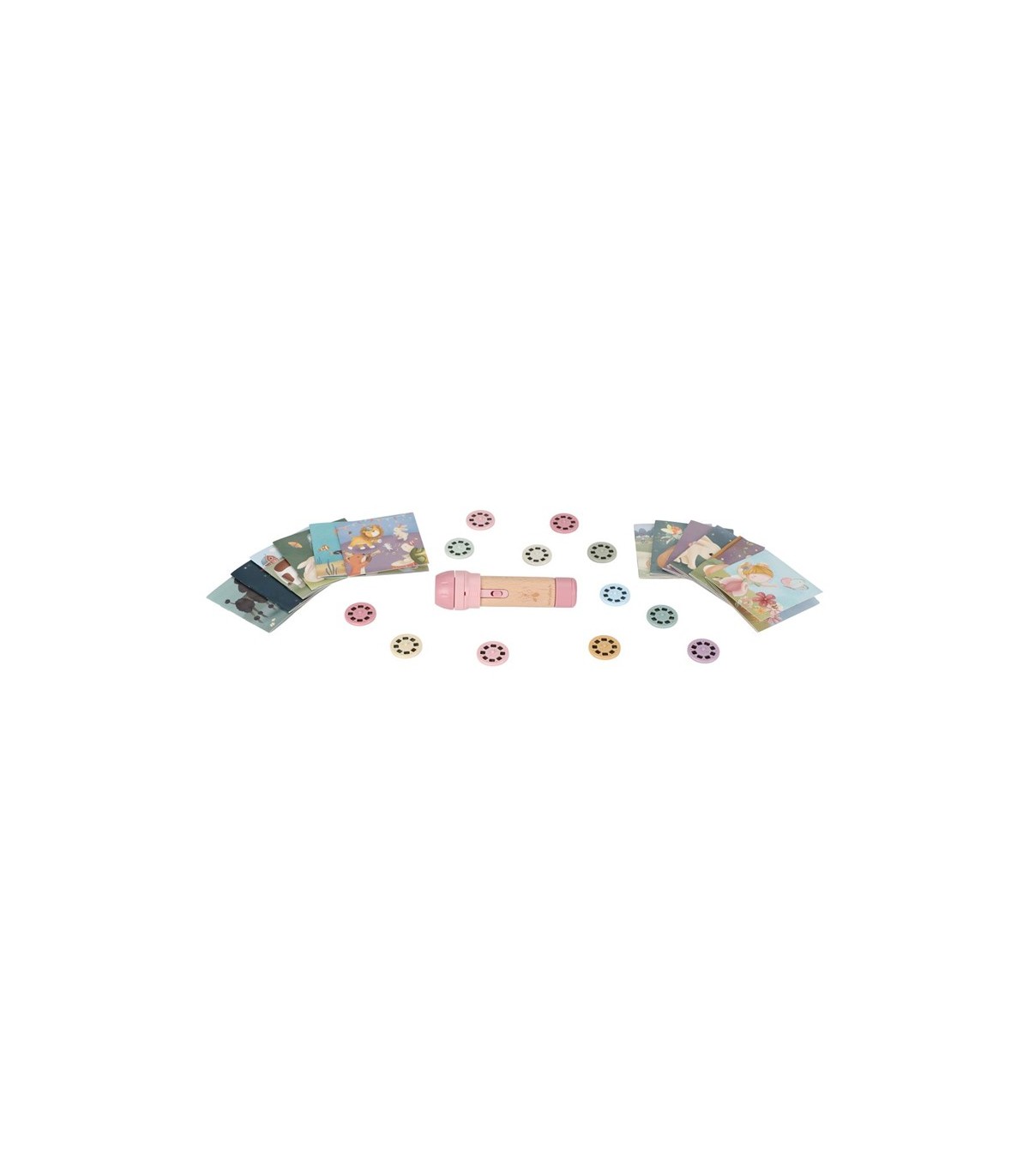 ¡Haz que la magia cobre vida con las historias de esta linterna con proyector para niños! Esta linterna especial contiene 12 discos, cada uno con su propia historia que cobra vida a través de hermosas ilustraciones únicas que proyectas en la pared. Cada historia se complementa con un folleto a juego con las ilustraciones. La linterna con proyector tiene un mango de madera resistente y funciona con pilas, por lo que puede ir a cualquier parte. Después de la historia, simplemente guarda la linterna y todos los accesorios en la bonita caja de almacenamiento. Perfecta para los niños que aman descubrir y experimentar historias.