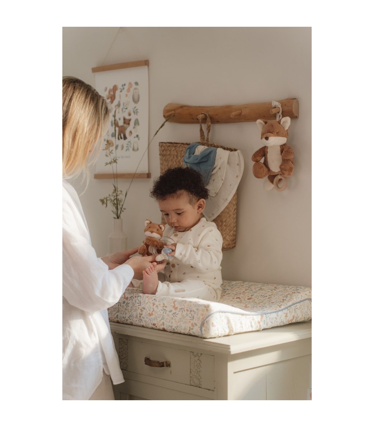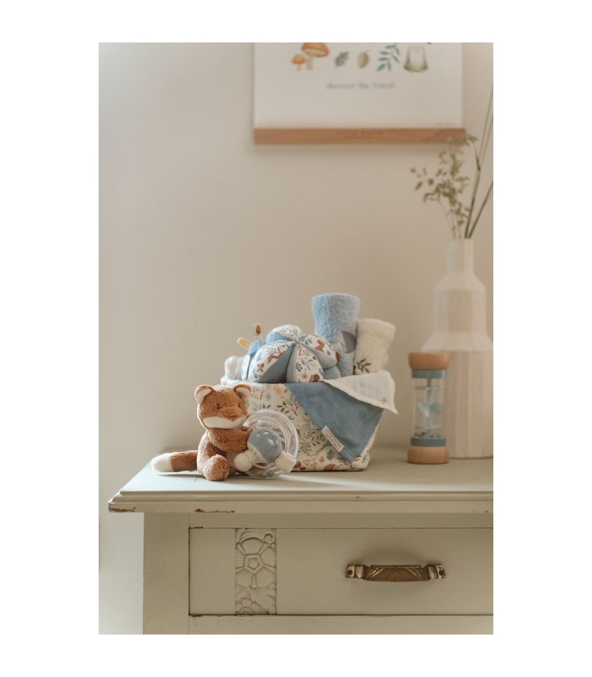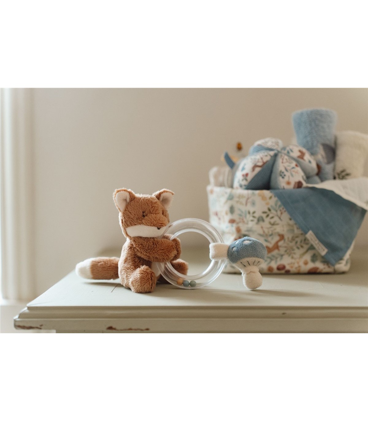 ¡Agarra, gira y sacude! El adorable zorro con su suave pelaje y su pequeña cola te invita a jugar y a poner en movimiento este sonajero. También ha elegido un pequeño hongo para que lo acaricies. El anillo transparente contiene 3 pequeñas cuentas de colores que empiezan a sonar cuando tu bebé juega con este divertido juguete. El sonajero no solo despierta la curiosidad y los sentidos de tu bebé, sino que también mejora la coordinación mano-ojo.