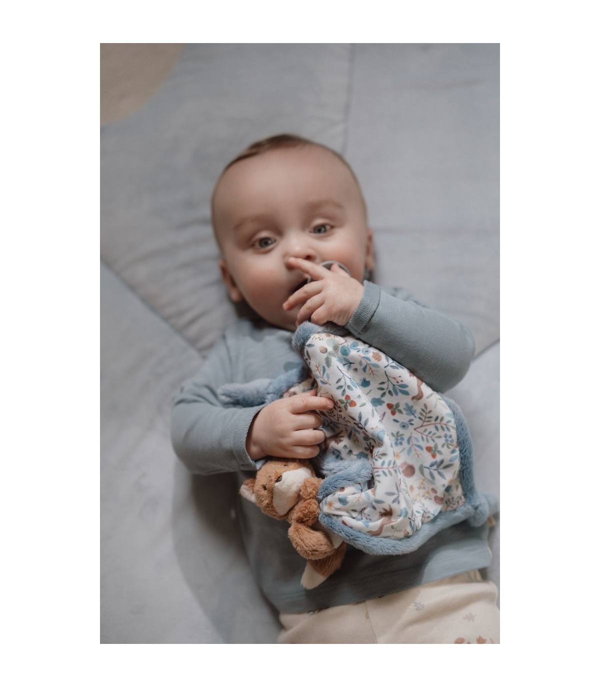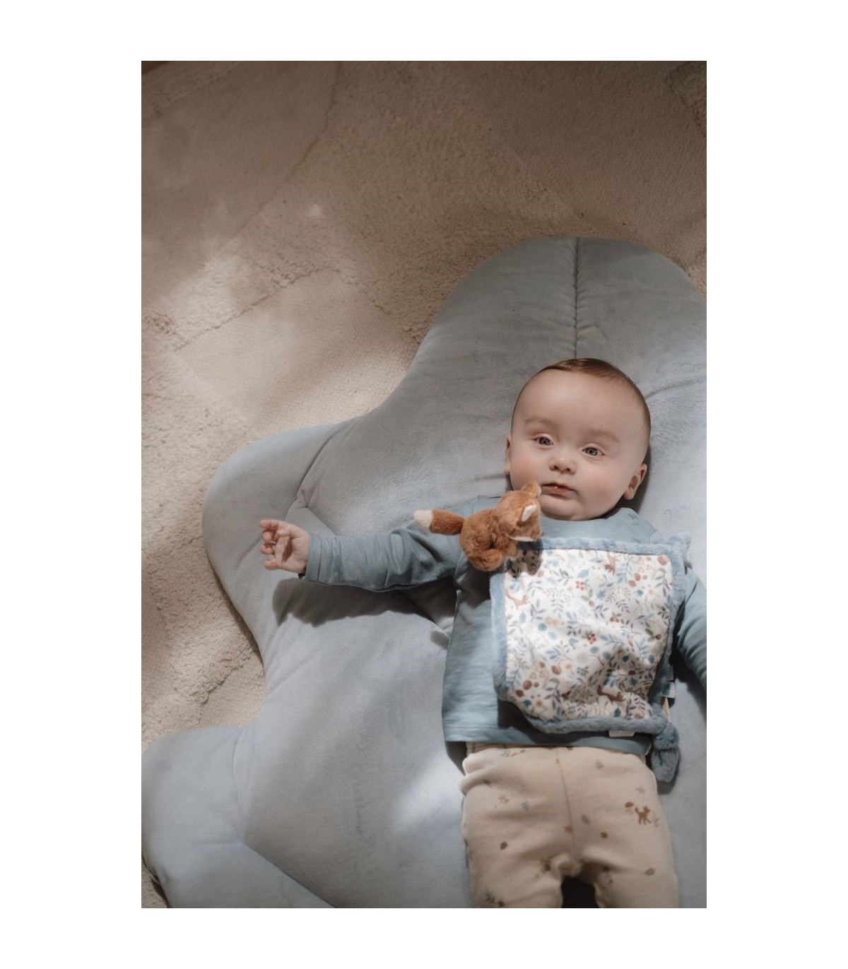 ¡Acurrúcate para sentirte cómodo! Mantén este suave paño de abrazos a tu alcance para recibir abrazos reconfortantes en cualquier momento y en cualquier lugar. Impreso con el diseño Forest Friends, presenta una variedad de características divertidas para que los bebés exploren. Varias etiquetas que estimulan los sentidos, nudos fáciles de agarrar y un lazo para colocar un chupete o un mordedor. El pequeño zorro suave hace que el paño sea aún más tierno.