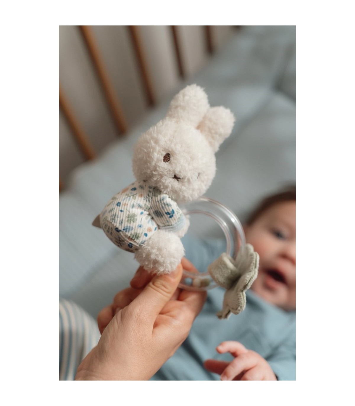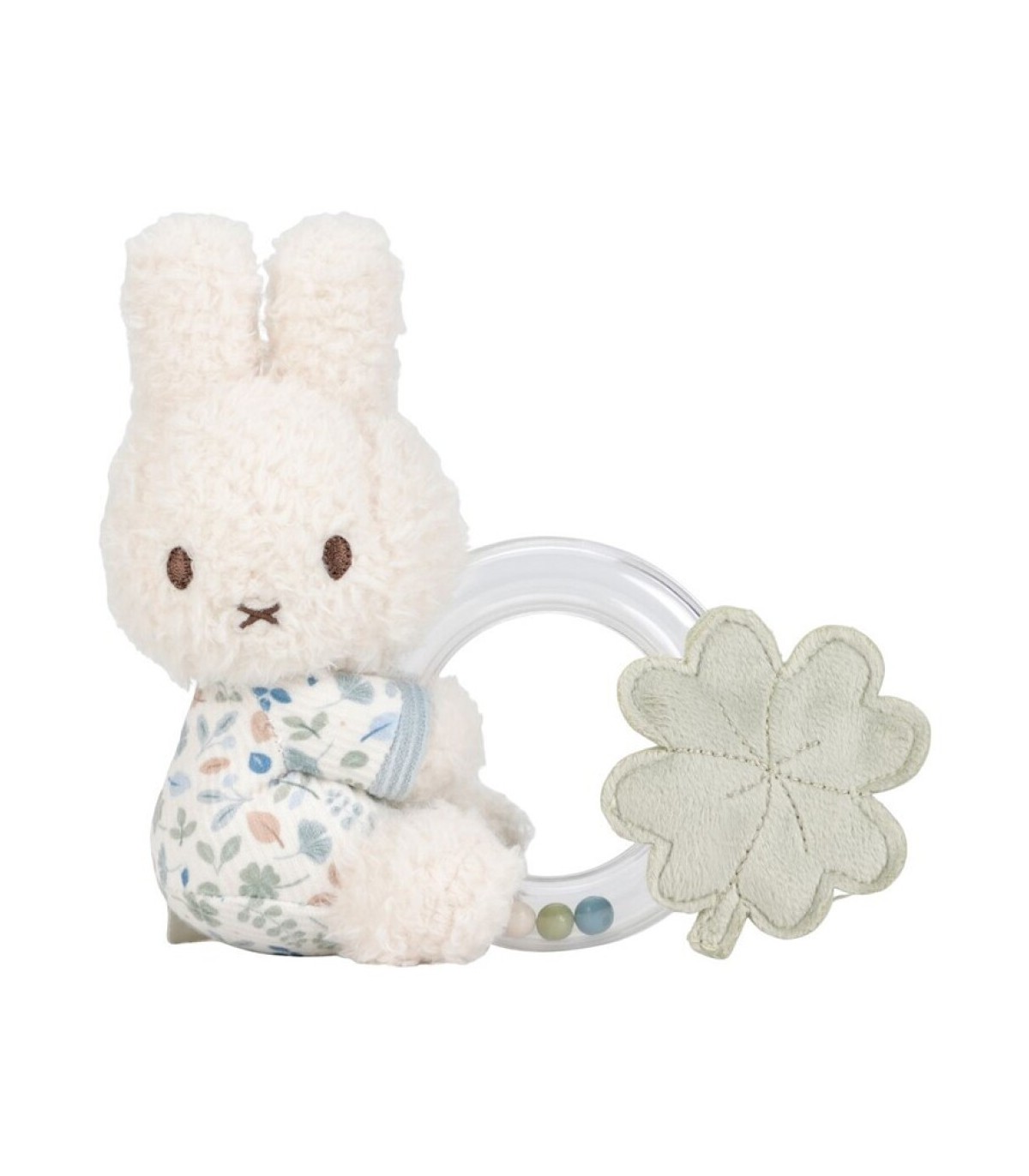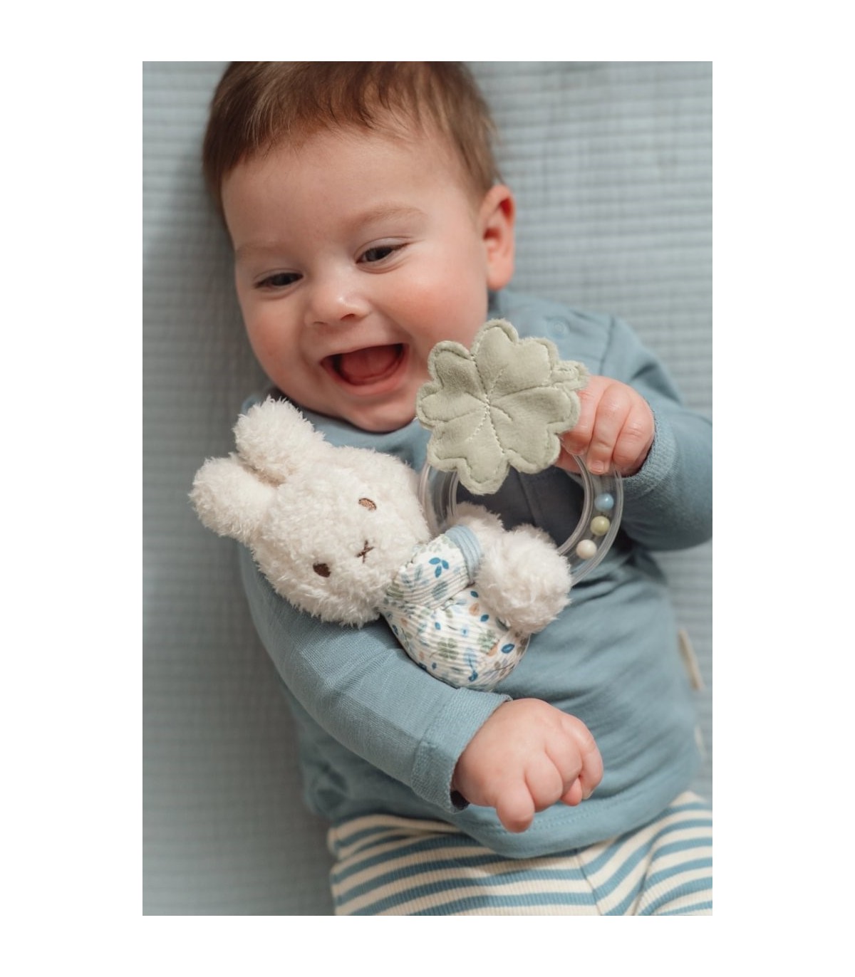 ¡Agárralo, sacúdelo y abrázalo! Este pequeño y suave Miffy sostiene un divertido juguete que hace sonidos tiernos cuando lo mueves y lo agitas. Vestido con Lucky Leaves, un diseño de Little Dutch, Miffy te invita a jugar con el sonajero de aro y acurrucarte con el trébol de cuatro hojas verde. El aro transparente está lleno de pequeñas cuentas que suenan cuando tu bebé mueve a Miffy hacia arriba y hacia abajo y hacia adelante y hacia atrás. Juguete clásico, perfecto para el parque infantil, que mejora la coordinación mano-ojo y estimula los sentidos.