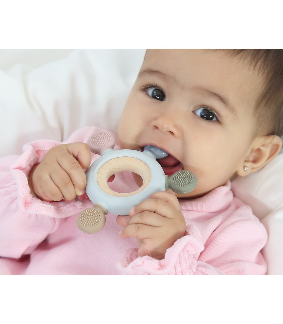 La dentición suele comenzar entre los 4 y los 7 meses y puede ser una época frustrante tanto para el bebé como para los padres. Puede que el niño babee más y quiera morder objetos, y seguramente resultará molesto y el niño estará más irritable. Para aliviar estos síntomas, debemos dar al bebé algo para morder.