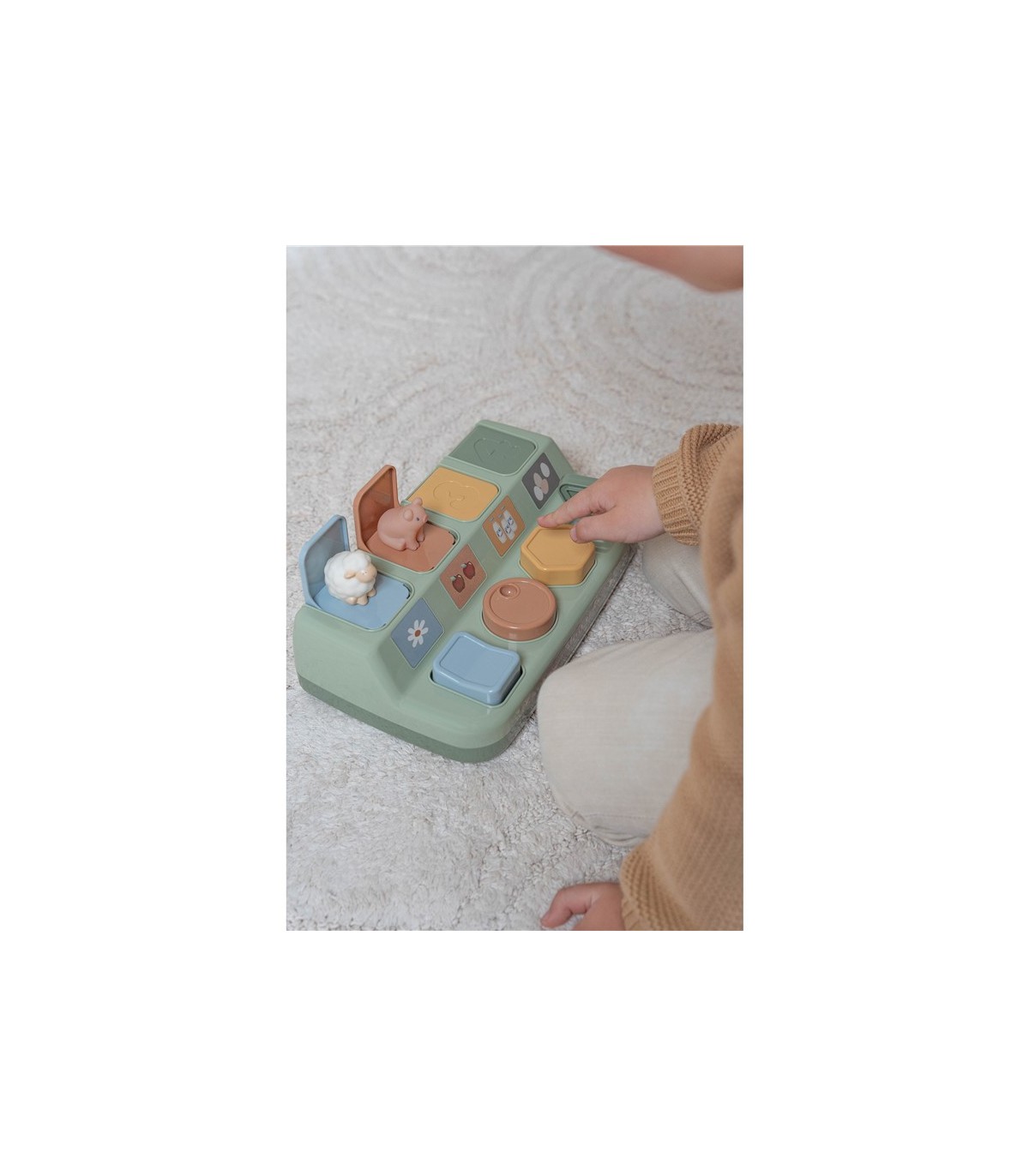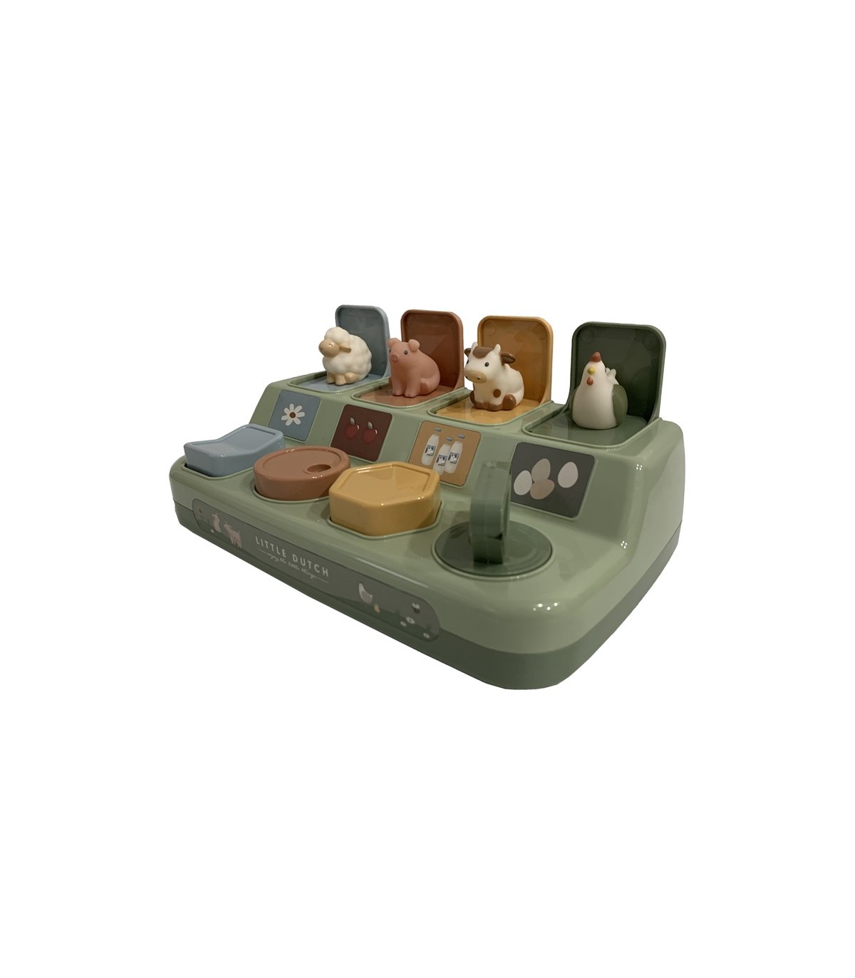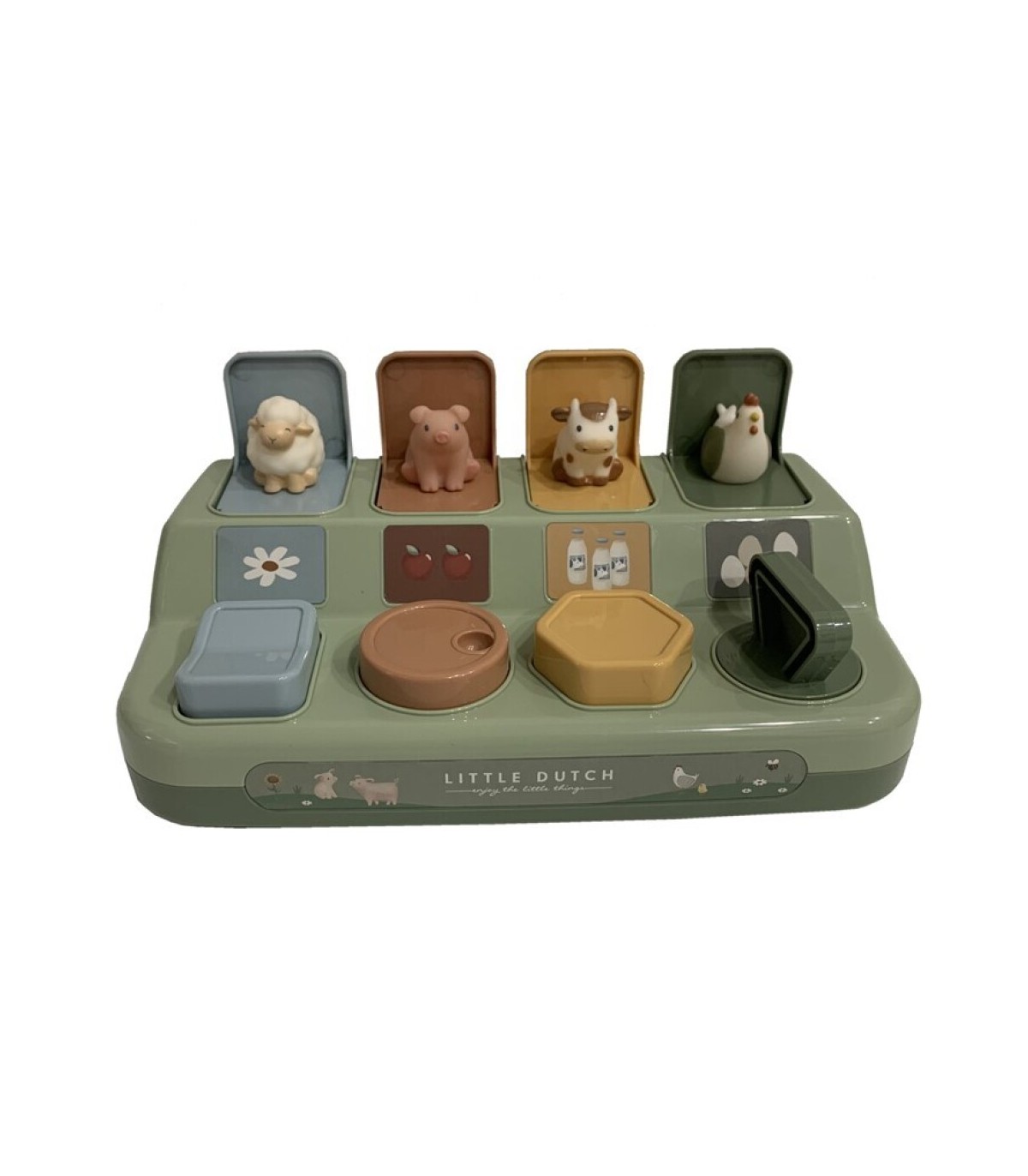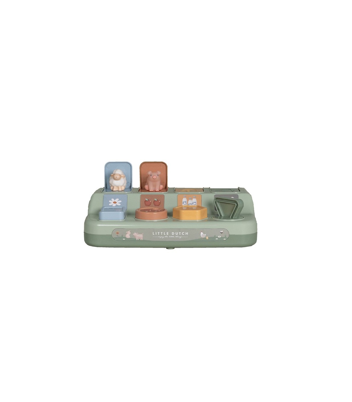 Promueva la imaginación, la creatividad y las habilidades motoras de su hijo con este juego de Little Dutch Sale la granja. Entrena de forma divertida el reconocimiento de colores y formas. Pulsa o gira los botones y aparece TADAA, un animalito de la colección Pequeña Granja de Little Dutch. Tamaño: 280x77x165mm. Viene en caja táctil. Apto para niños a partir de 12 meses.