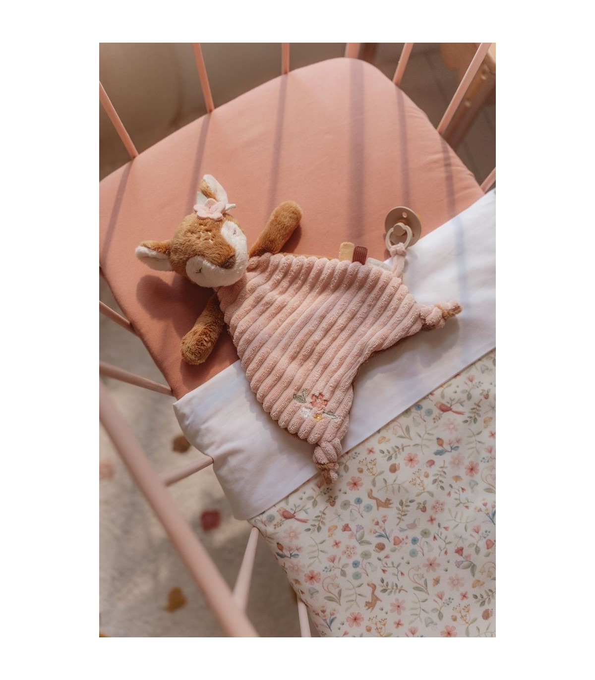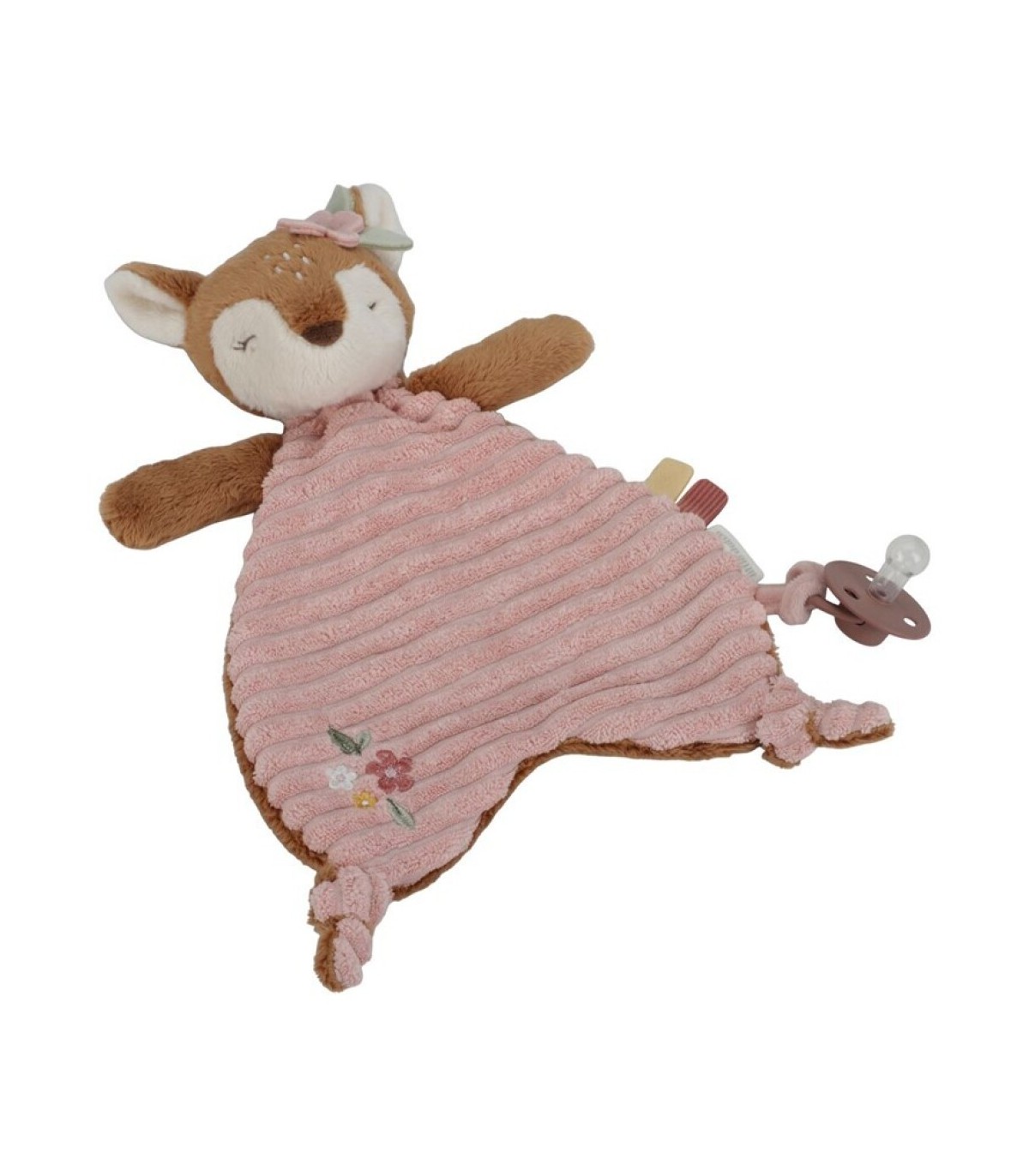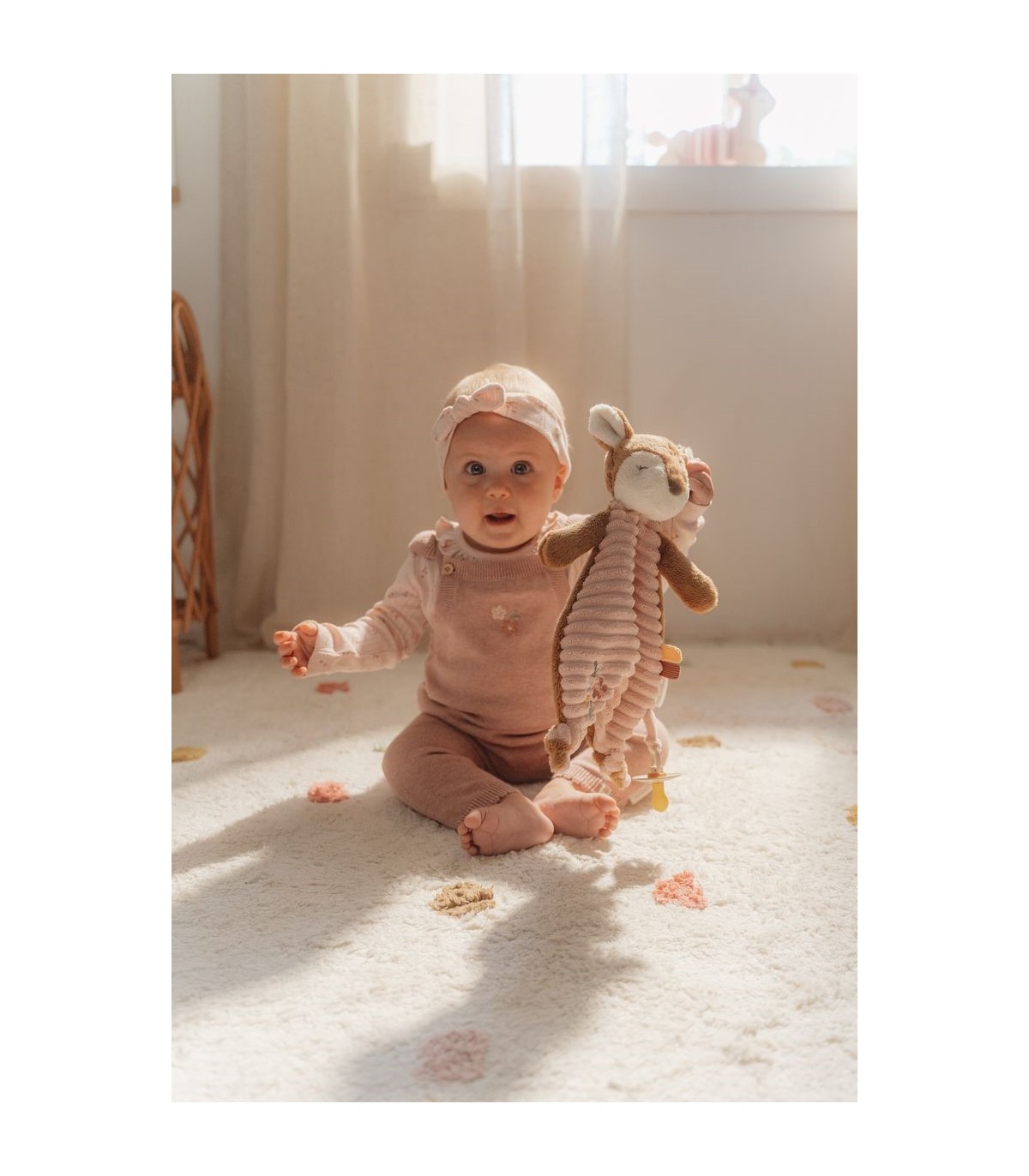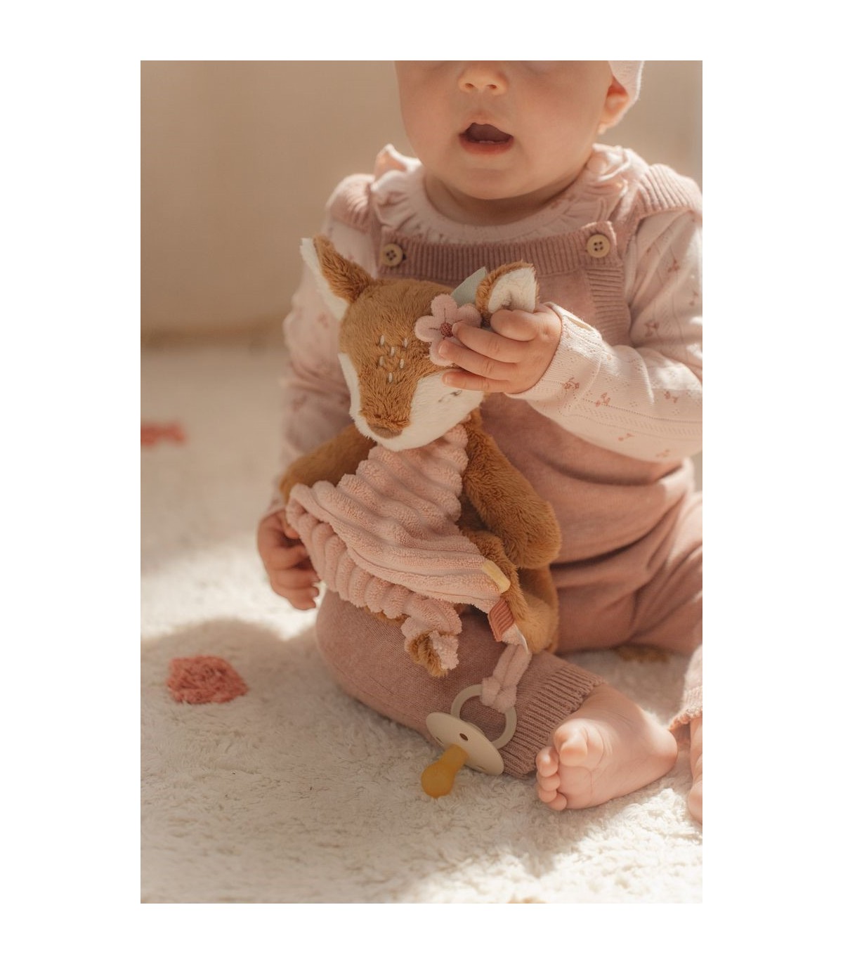 ¡Un abrazo para consolarte! Este compañero de abrazos está listo para acurrucarse y consolarte donde y cuando lo necesites. El simpático ciervo te calmará con su suavidad mágica, ofreciéndote un abrazo reconfortante siempre que necesites un compañero a tu lado. La tela suave de su cuerpo presenta detalles encantadores que incluyen etiquetas divertidas, un bordado de Fairy Garden y dos nudos para que las pequeñas manos los agarren y sujeten. Con el práctico lazo, es fácil colocar un chupete para mantenerlo cerca.