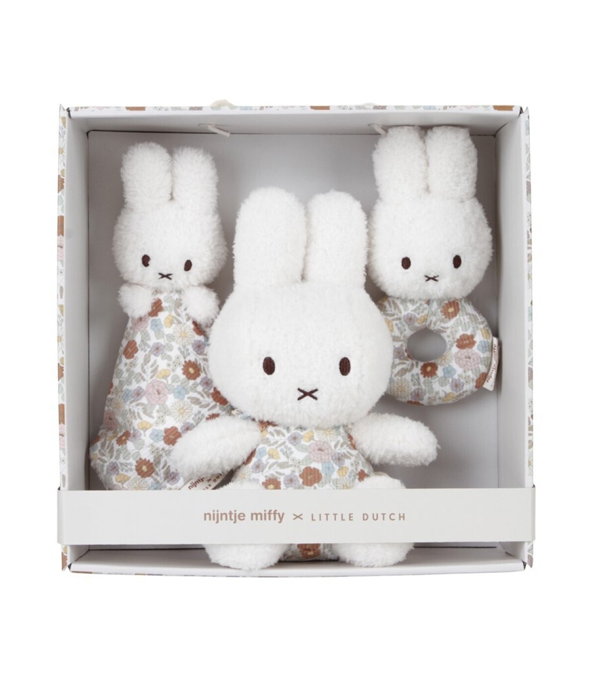 ¡Una caja de alegría! Los tres juguetes miffy más adorables envueltos en una hermosa caja de regalo son el regalo perfecto para un recién nacido o una baby shower. Combina miffy con Little Dutch y obtendrás lo mejor de ambos mundos: el conejito suave más lindo disponible, en el diseño más hermoso de Flores Vintage. La caja de regalo incluye tres artículos suaves para acurrucarse, abrazar y jugar. El miffy de peluche es icónico y cada bebé debería tener al menos uno. A la hora de acostarse, el paño súper suave para acurrucarse brinda la máxima relajación. Y el sonajero entretiene a la hora de jugar. Todo envuelto en una hermosa caja de regalo cubierta con Flores Vintage. ¡Una alegría para regalar!