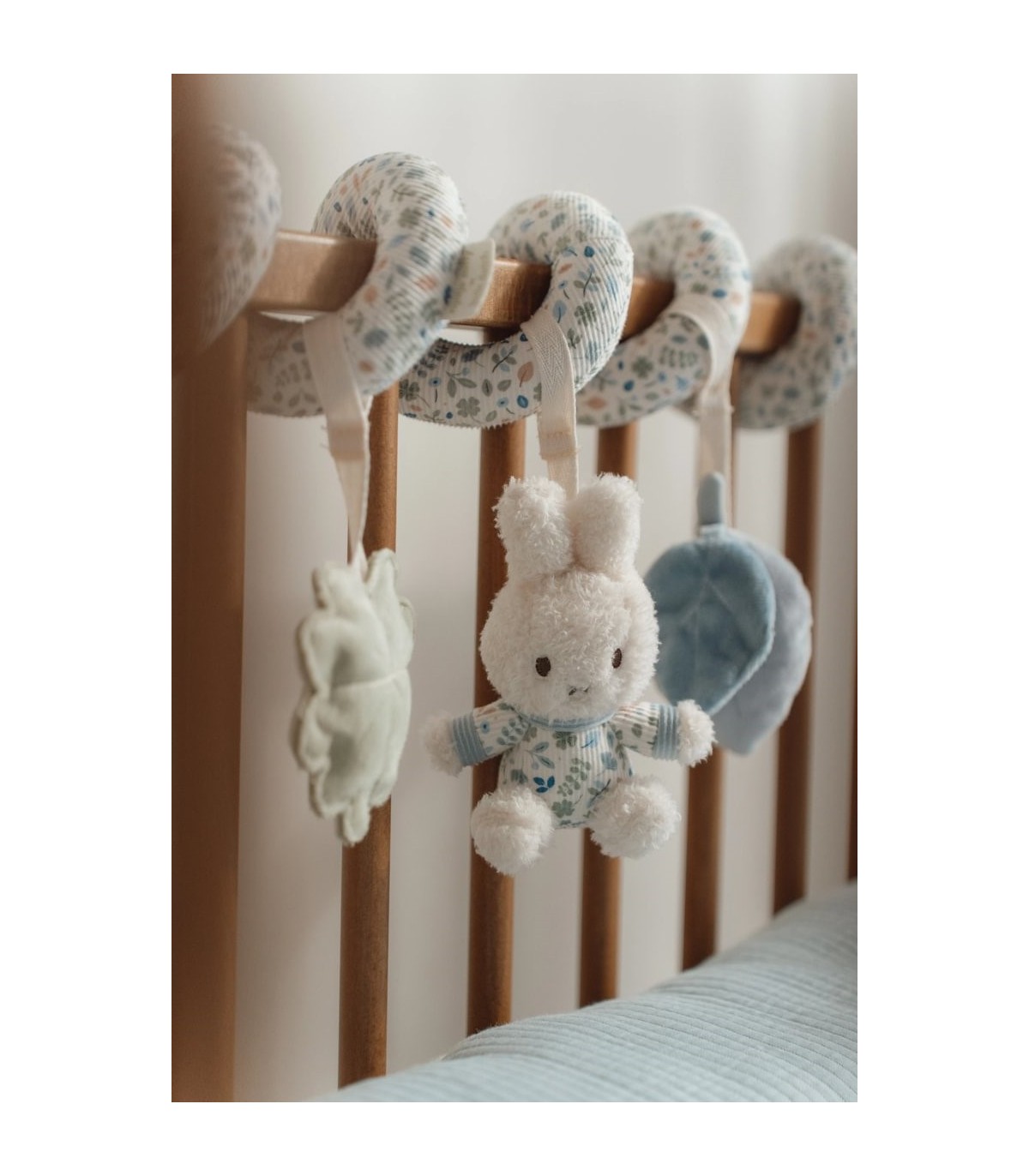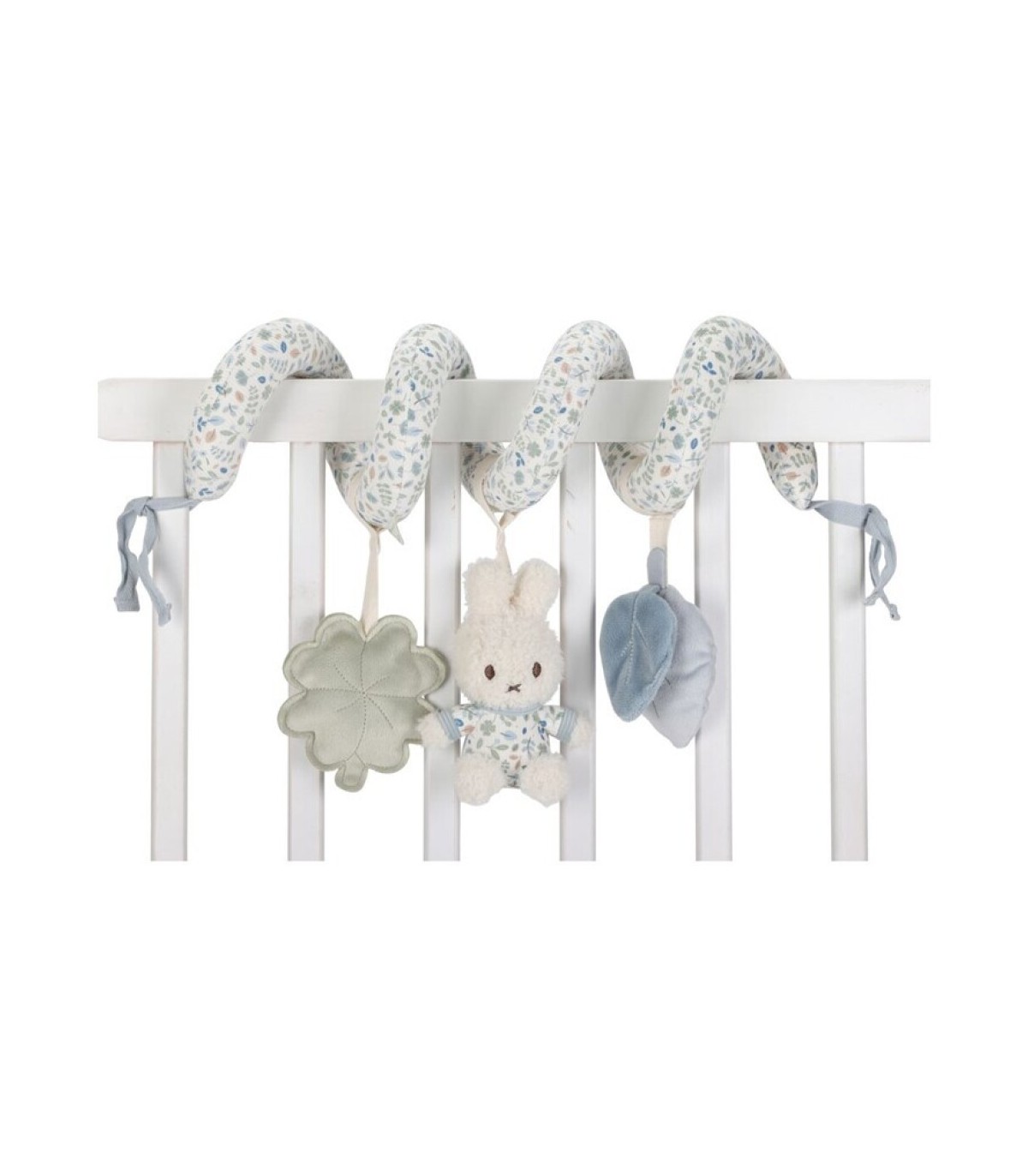 ¡Mira, siente y descubre! Esta divertida y entretenida espiral de actividades mantendrá a los bebés ocupados tanto en casa como fuera de ella. Simplemente fija este práctico juguete con las cuerdas de los extremos. Fortalece los sentidos y fomenta la coordinación mano-ojo. La espiral de actividades está hecha de pana con algodón. Miffy está unida a la espiral, junto con un trébol de cuatro hojas y una hoja