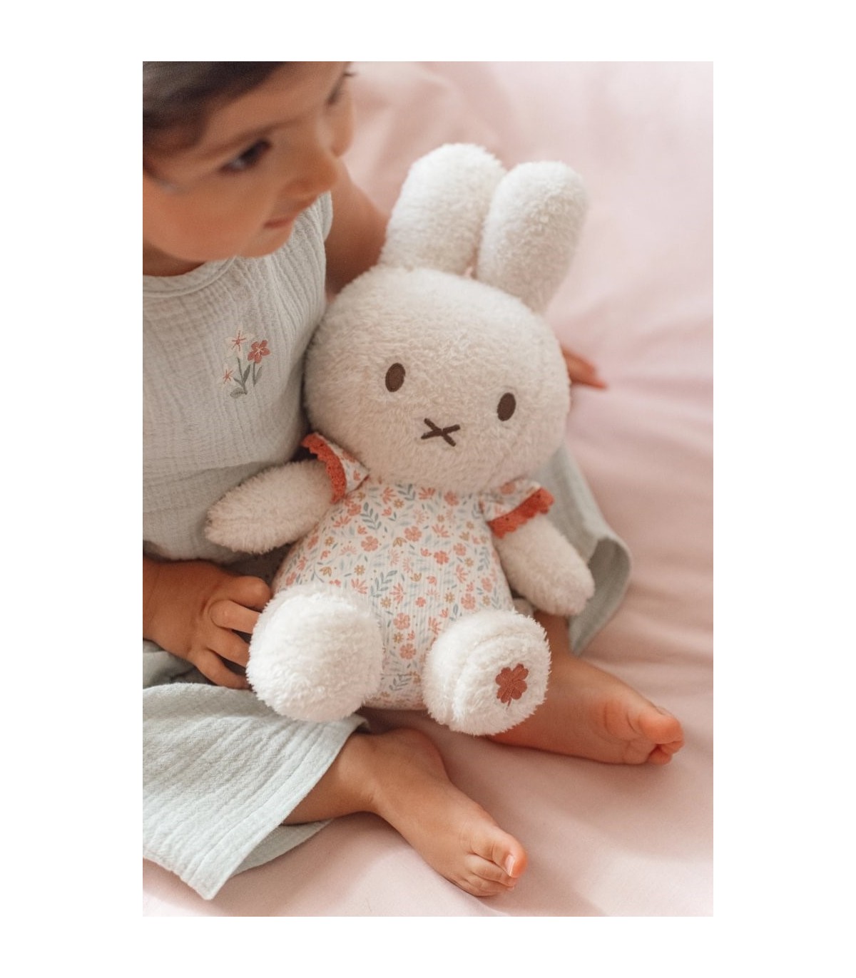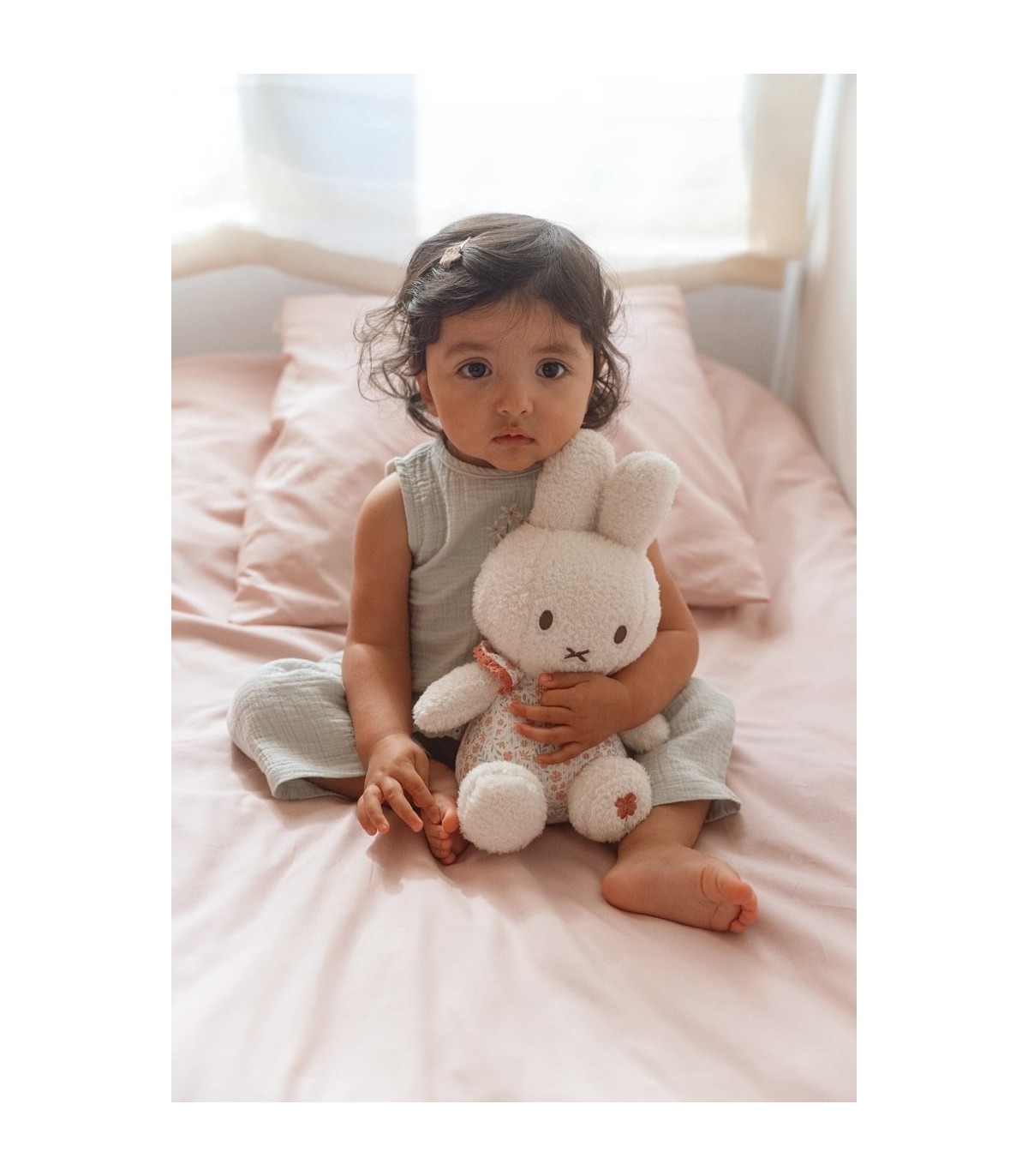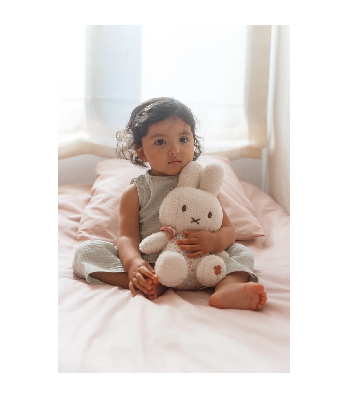 Descripción ¡Ven a abrazar a Miffy! Es suave y dulce y siempre está lista para recibir abrazos. Mientras juegas, de paseo o a la hora de dormir, siempre está ahí para ti. Miffy, hecha de suave felpa y pana estampada, mide 30 cm de largo y ahora luce un hermoso conjunto con el estampado Lucky Blossom, diseñado por Little Dutch. El peluche incluye una divertida campana. ¡Un bonito complemento para la habitación del bebé!