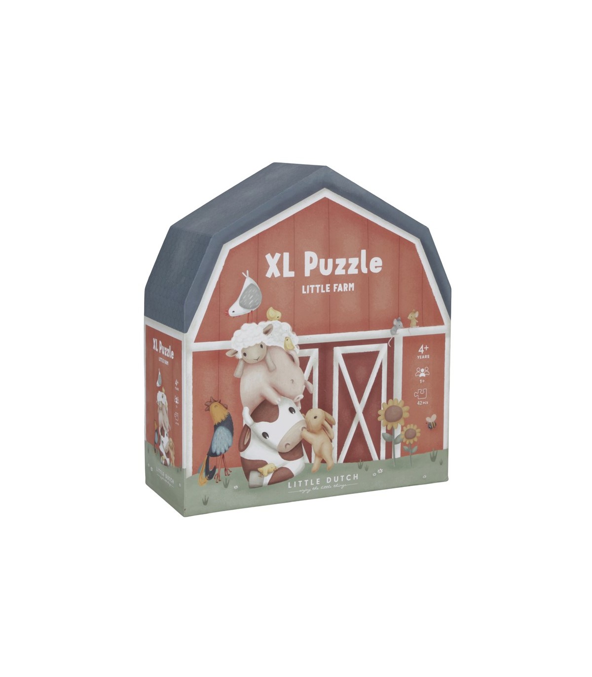 Diversión garantizada con este gran puzle de suelo de Little Dutch! Siéntate en el suelo y junta las 42 piezas del rompecabezas. Esto crea una gran ilustración de los animales que puedes encontrar en la granja. El puzle de suelo promueve la concentración y la coordinación ojo-mano de su pequeño. ¿Qué ves aparecer?