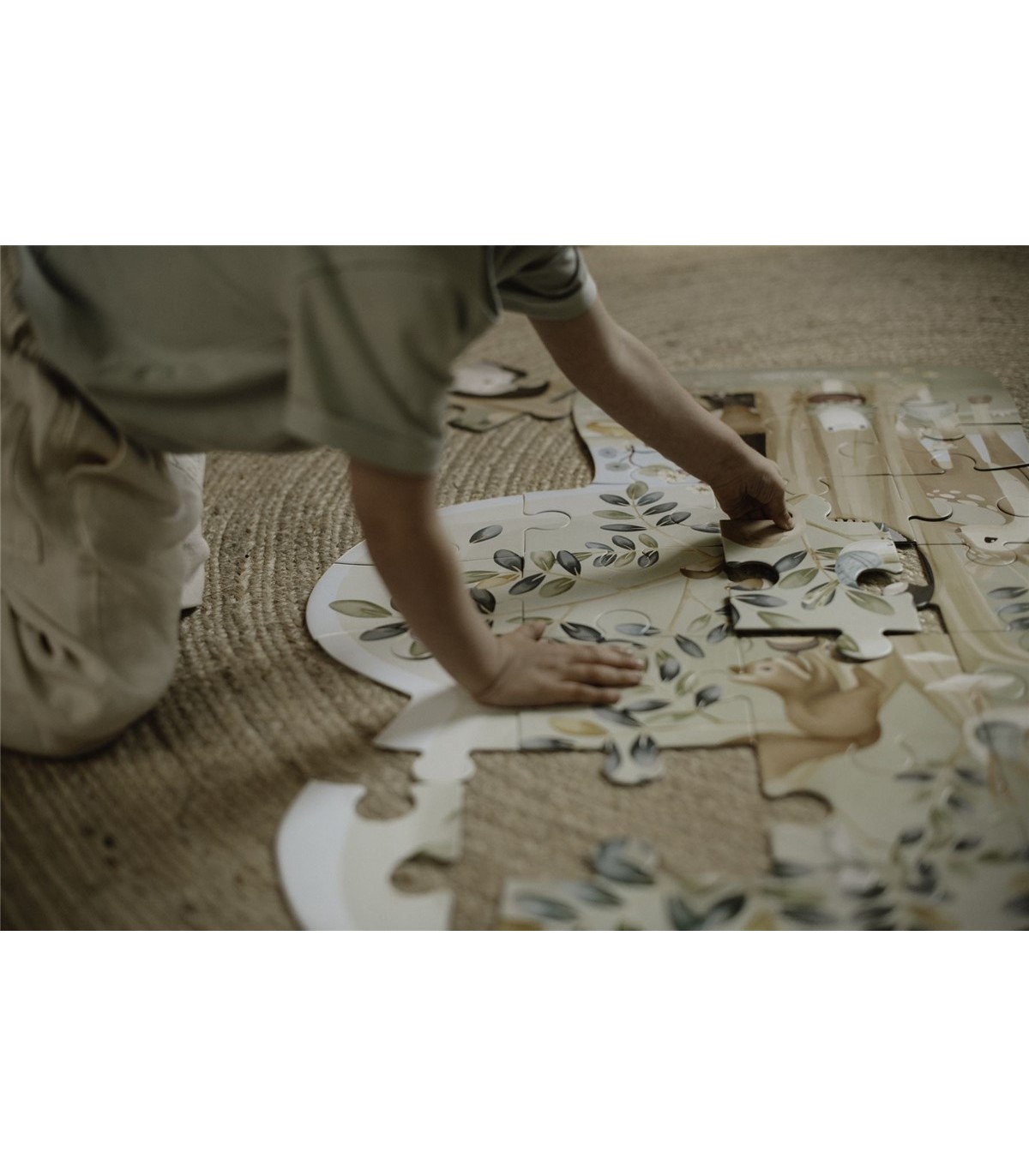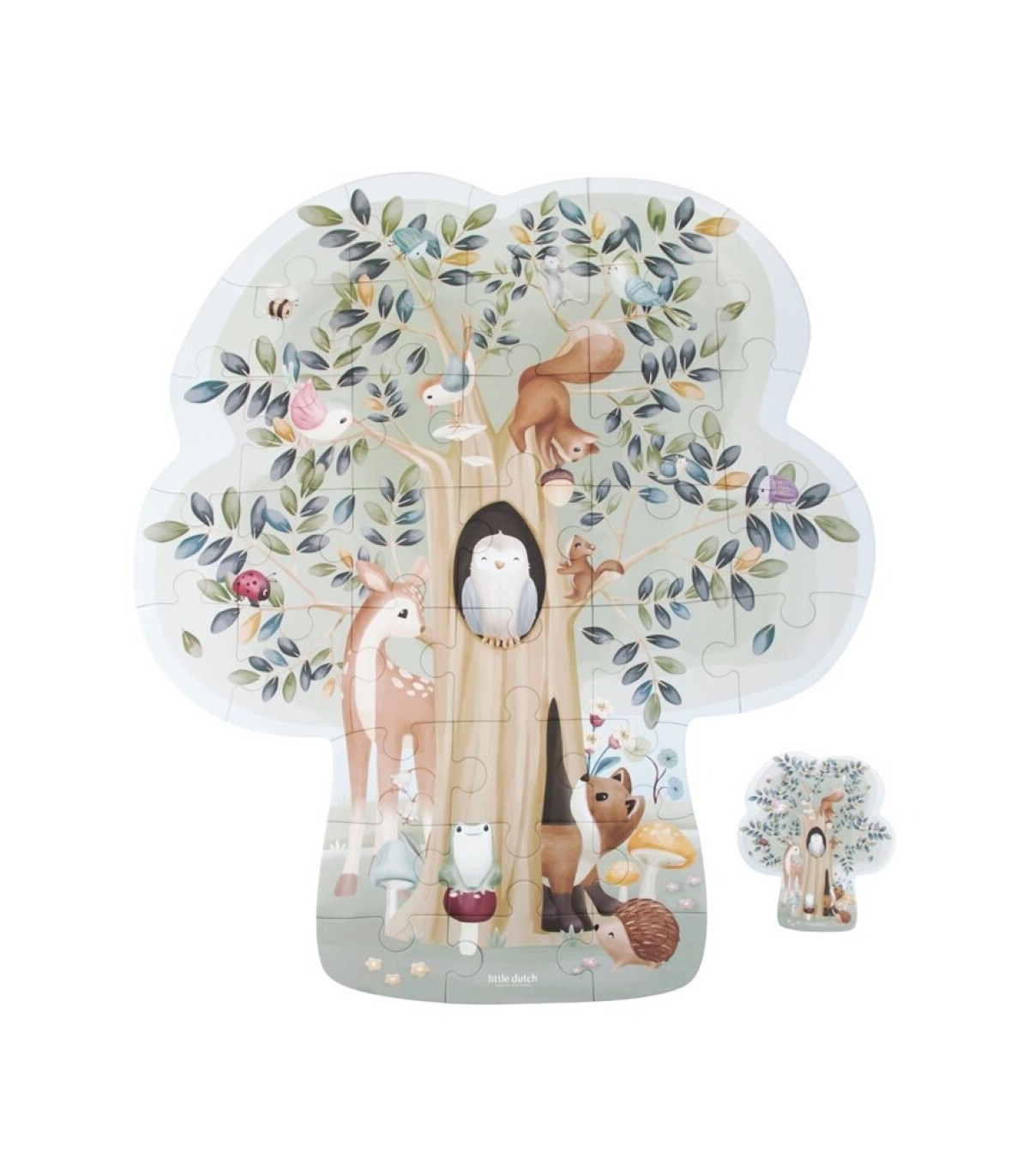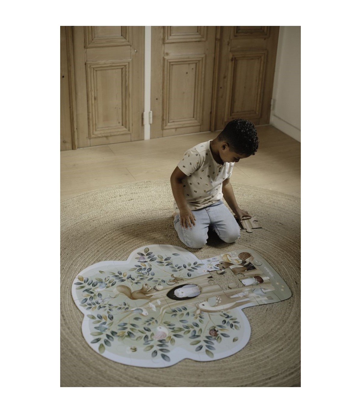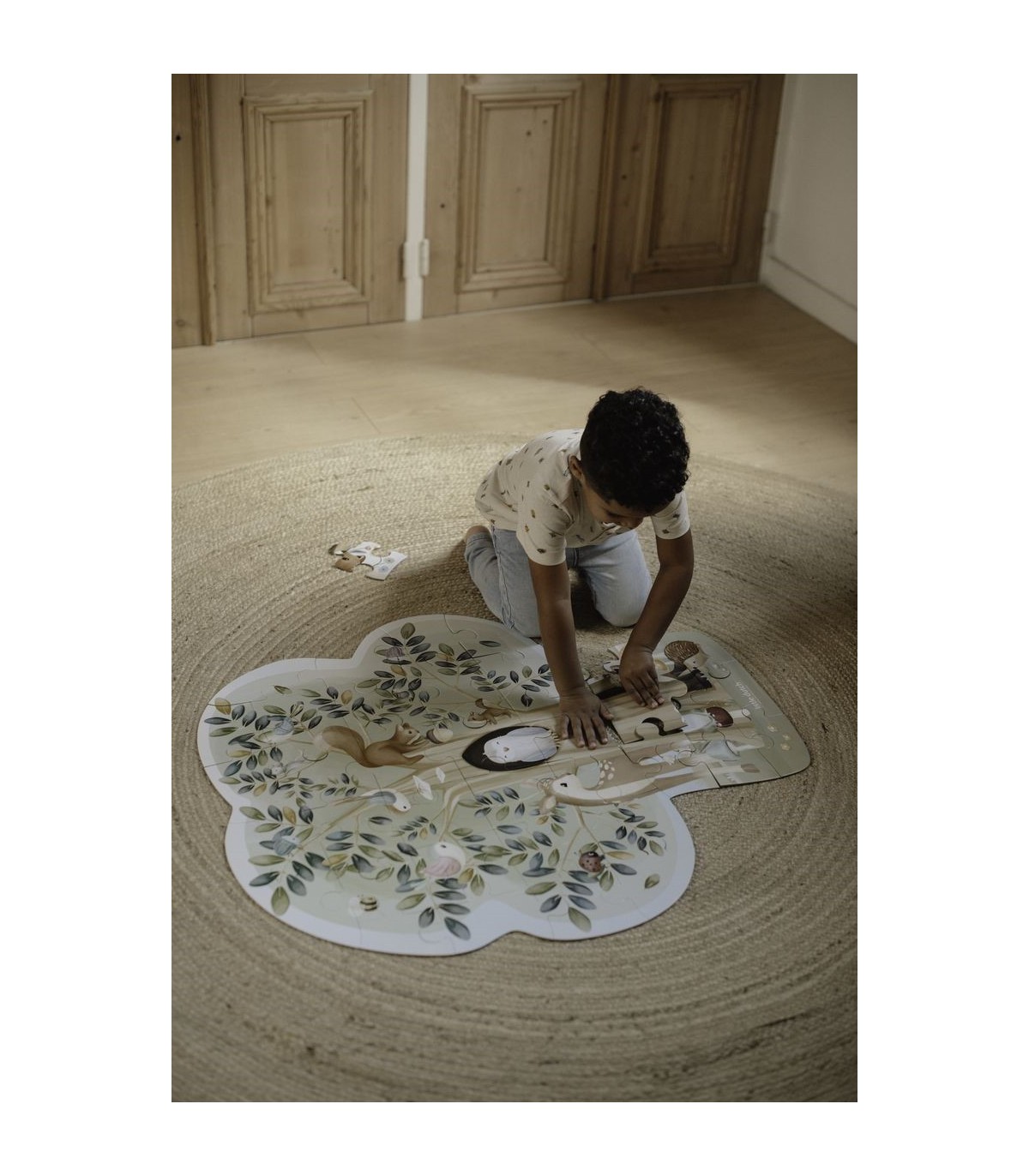 ¡Embárcate en un viaje mágico con el majestuoso puzle del suelo del árbol! A medida que reconstruyas el árbol, descubrirás las maravillosas criaturas que lo habitan. Mire entre las ramas para ver ardillas recogiendo bellotas, pájaros construyendo sus nidos e insectos zumbando. ¿Podrás encontrar dónde se esconde el simpático zorro? Este puzle no sólo es divertido: es una excelente manera de desarrollar la concentración y la coordinación ojo-mano. Así que busca un lugar acogedor, siéntate y deja que la magia del bosque se desarrolle con 37 piezas. ¿Qué maravillas descubrirás a medida que se vaya armando el rompecabezas?