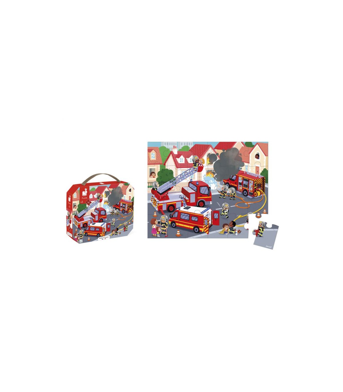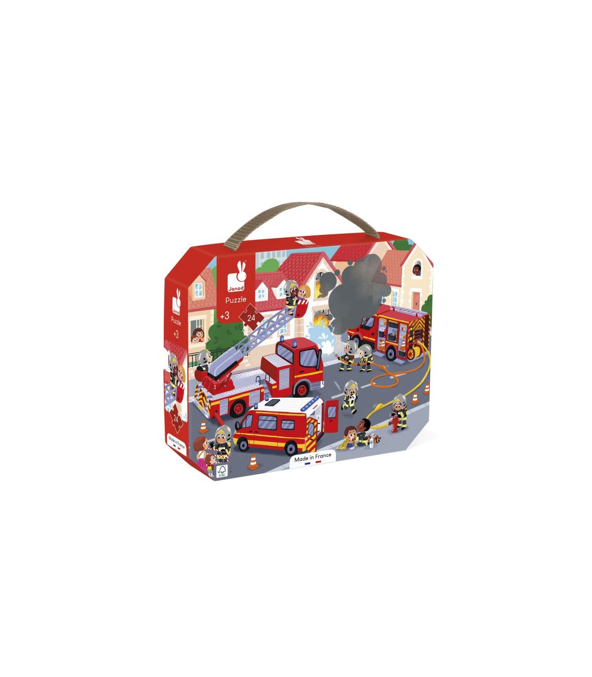 ¡Niinoo, niinoo! Los bomberos están en plena acción intentando apagar el incendio. Este precioso puzle de cartón de 24 piezas con un montón de detalles es ideal para los pequeños amantes de la aventura y de los bomberos. El niño ejercitará la memoria y la destreza con este bonito puzle de cartón de 24 piezas. Este puzle se transporta fácilmente gracias a su bonito maletín y a su asa de tela. Contiene un póster que sirve como modelo para los principiantes. Los más avezados podrán a continuación realizar el puzle con total autonomía. Fabricado en Francia, producto FSC y hecho con tintas vegetales. Puzle para niños a partir de 3 años.