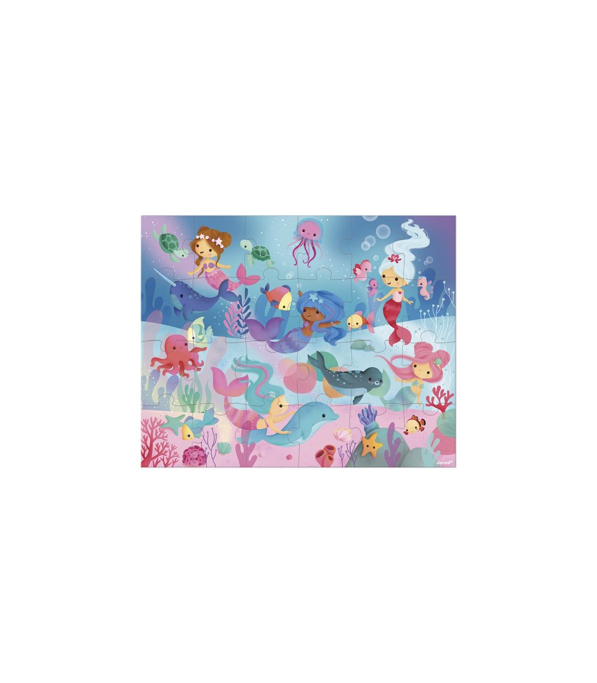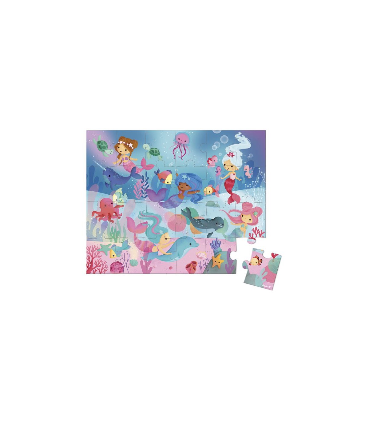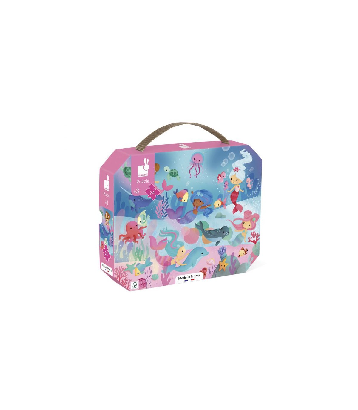 Puzle de cartón de 24 piezas con la temática de las sirenas. Póster incluido para facilitar la realización del puzle. Puzle: 50 x 40 cm. Fabricado en Francia. Cartón con certificación FSC y tintas vegetales.