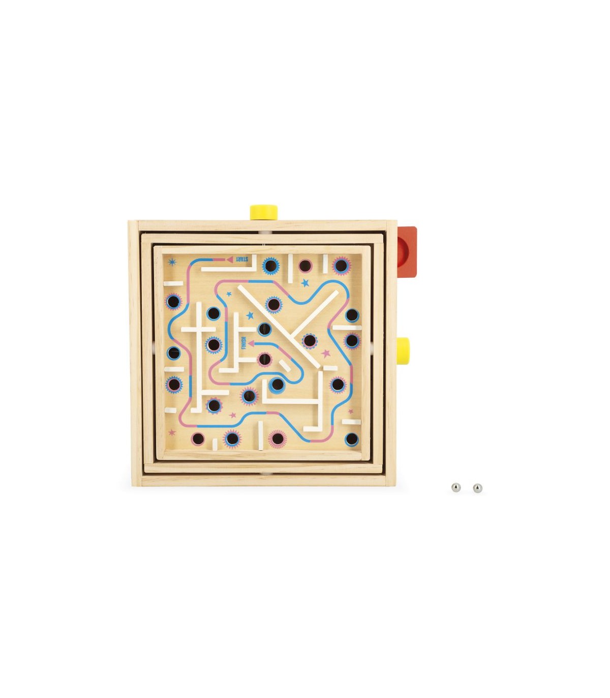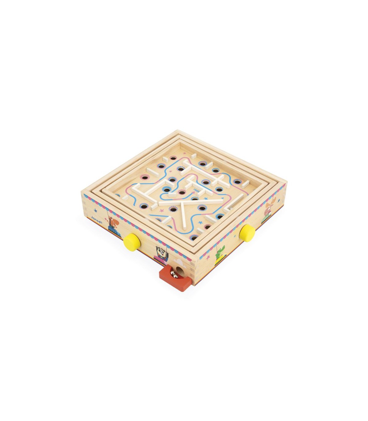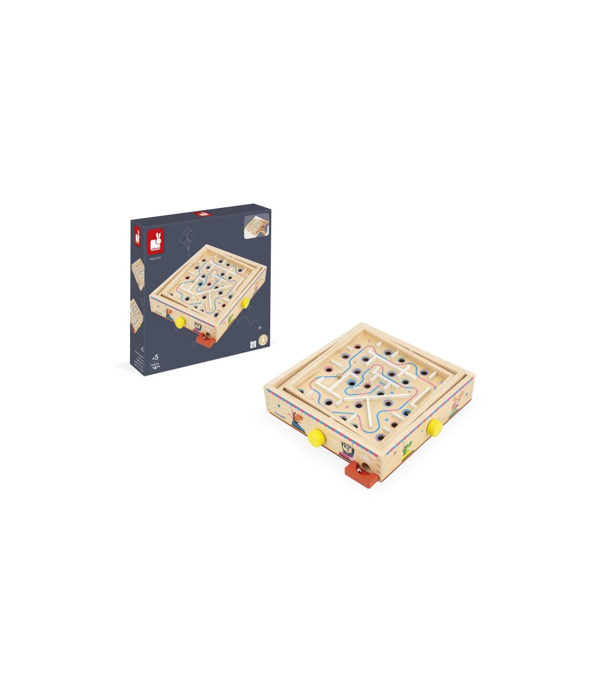 Preparados, listos, ¡ya! Ofrezca a su hijo un desafío emocionante con este ingenioso laberinto de madera. Gracias a sus dos botones giratorios, su pequeño podrá girar el tablero sobre dos ejes y dirigir las bolas de metal por un recorrido lleno de obstáculos. Este juego de habilidad favorece la concentración y la coordinación mano-ojo, mientras divierte a los niños durante horas. Juguete de habilidad de madera FSCTM para niños a partir de 5 años.