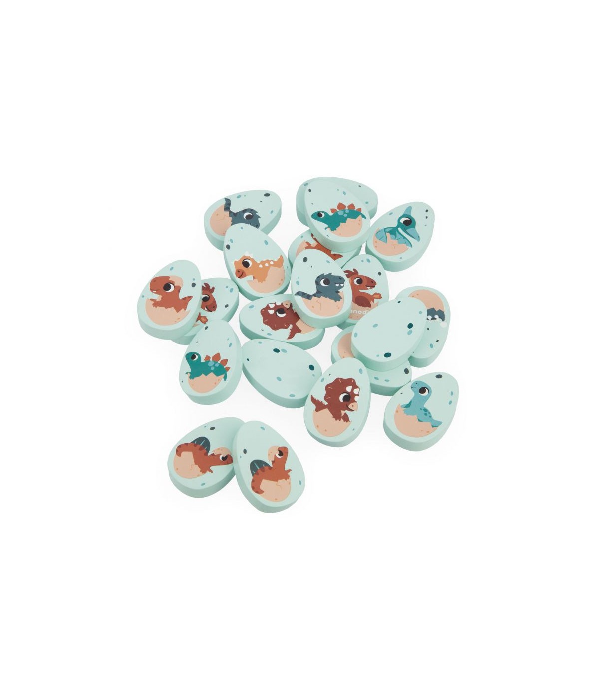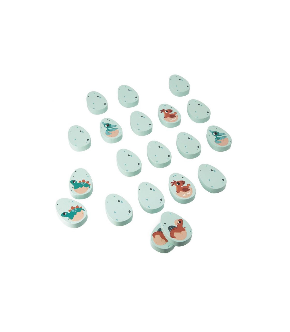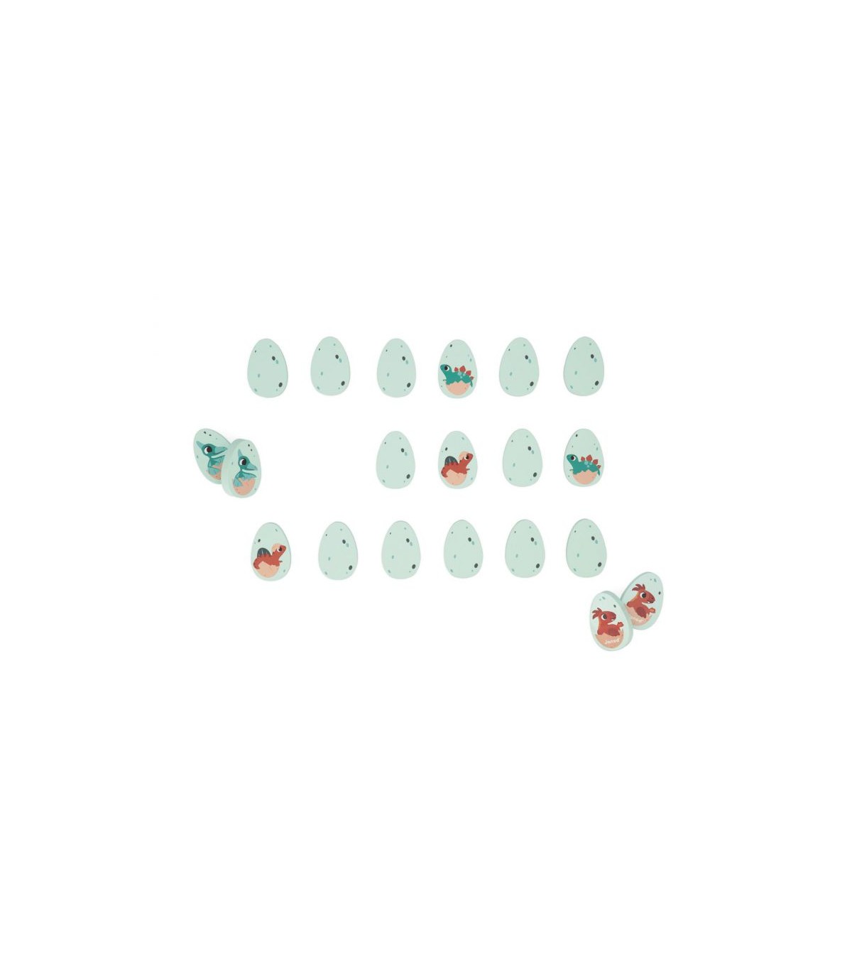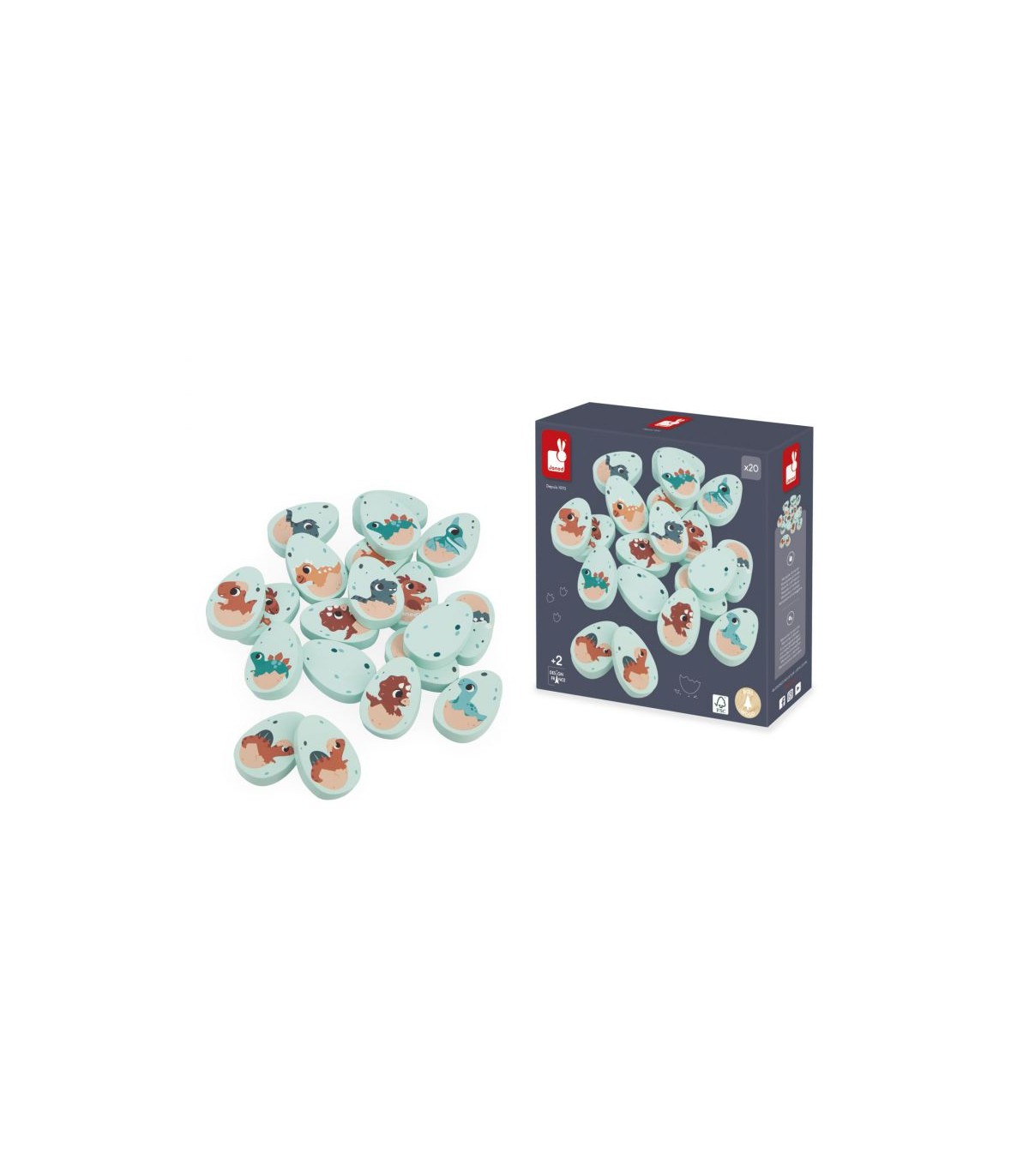 ¡Dinosaurios en apuros! ¿Quién va con quién? Las crías de dinosaurio se han mezclado y hay que juntarlas por parejas. Este set está compuesto por 20 huevos de madera ilustrados con diferentes dinosaurios. Da la vuelta a los huevos uno a uno para encontrar dos idénticos. Ideal para desarrollar la memoria y la destreza. Juguete de madera FSCTM. Para niños a partir de 2 años.