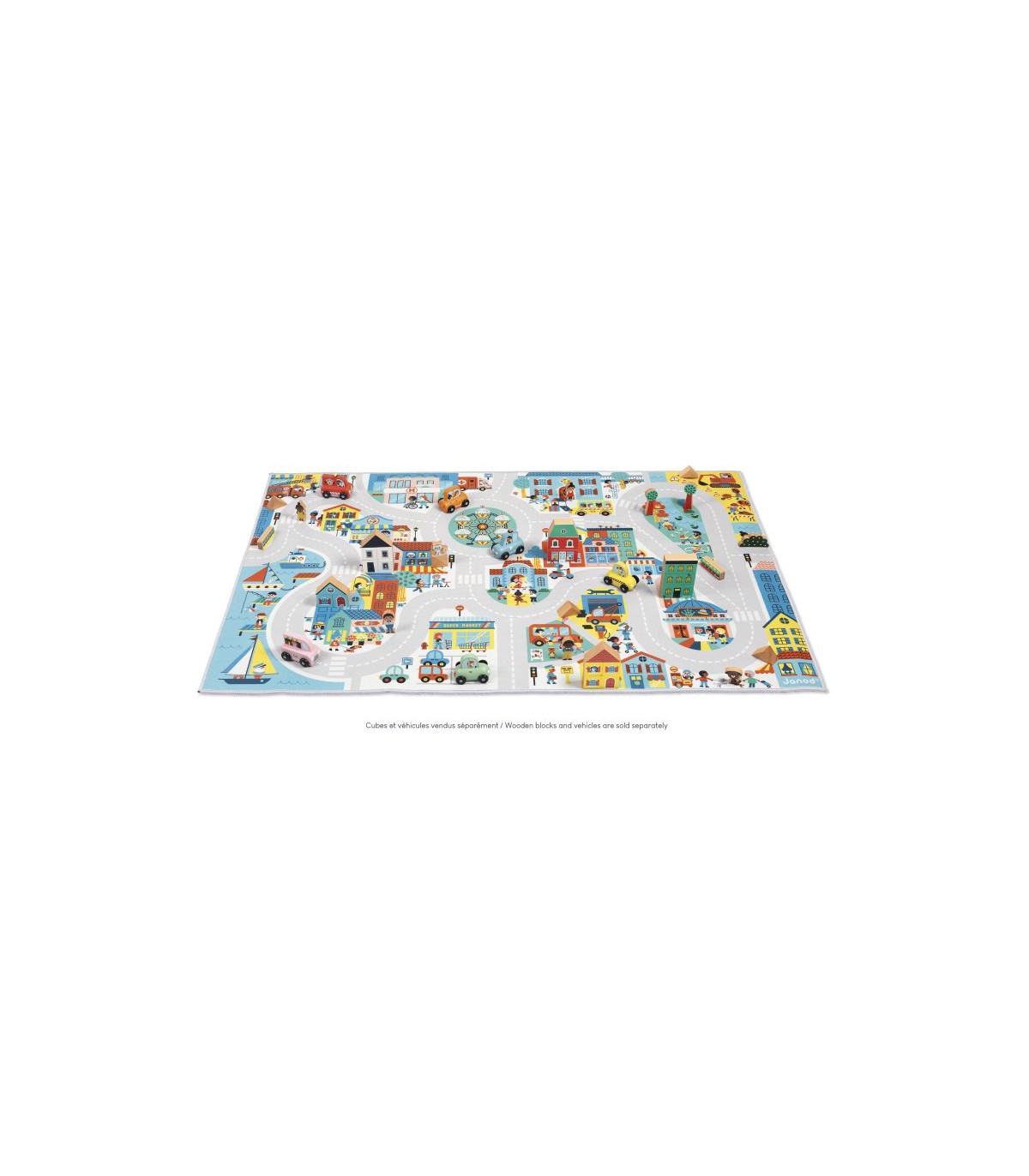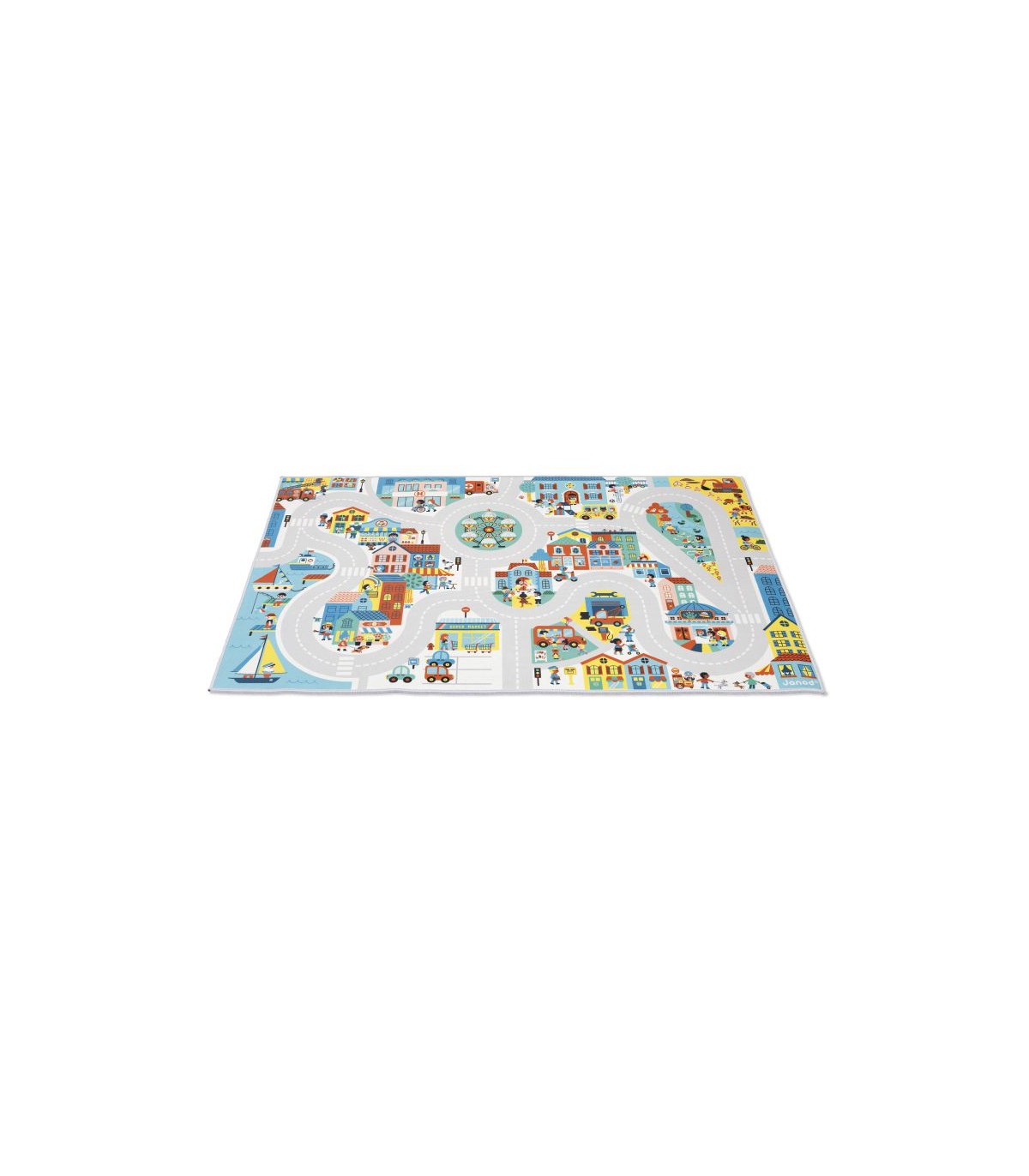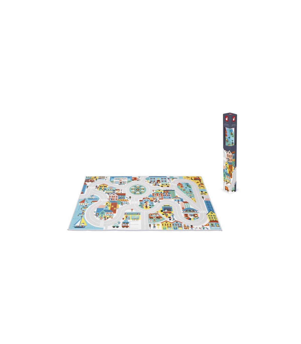 ¡Bienvenidos a esta colorida y animada ciudad donde cada esquina esconde una sorpresa! Esta alfombra de juego que representa una ciudad tiene una calle ancha y larga para descubrir cada barrio imaginando historias sin fin. Además de estimular la imaginación, sirve para jugar a encontrar cosas y ayuda a ampliar el vocabulario. ¿Encuentras al cartero? Con el tema de la ciudad, enseña al niño las profesiones, los colores y las emociones. Un extra: ¡la alfombra es antideslizante! Así el pequeño puede jugar fácilmente y con total seguridad con sus cochecitos. Juguete de imitación para niños a partir de 2 años. Puedes completar tu alfombra con una bonita colección de vehículos y bloques de madera que encontrarás en la gama Janod. ¡Y también puedes combinarla con las demás alfombras de la colección para crear un espacio de juego gigantesco!