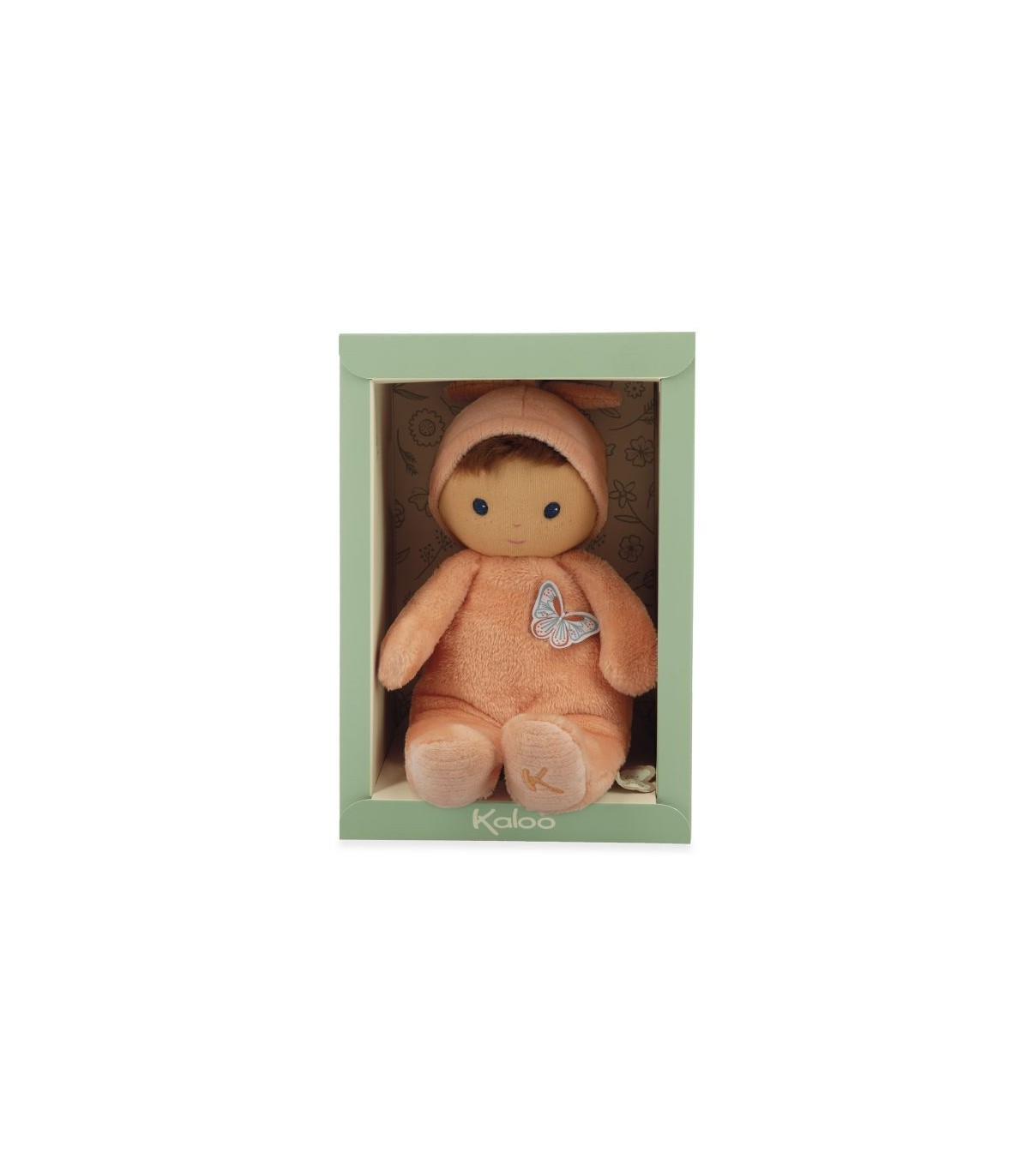 Descubra a Bebé Zinnia, una adorable muñequita con pelo castaño, de 24 cm de altura, con un cuerpo de color melocotón y unos preciosos ojos azules. Le gusta especialmente la flor de zinnia, símbolo de afecto y amistad. Su cuerpo es suave y blandito, y sus bracitos invitan a dar dulces abrazos. Una bonita mariposa adorna su torso, recordando la ligereza y la gracia de las flores. La etiqueta tejida con forma de mariposa es perfecta para invitar a los más pequeños a tocarla y así desarrollar su destreza. Está presente en todas nuestras tiernas bebés, como firma de la gama, como símbolo de conexión y singularidad. Se ha prestado especial atención a la elección de los materiales, ya que para fabricar esta encantadora bebé se ha utilizado un 90% de materiales reciclados.