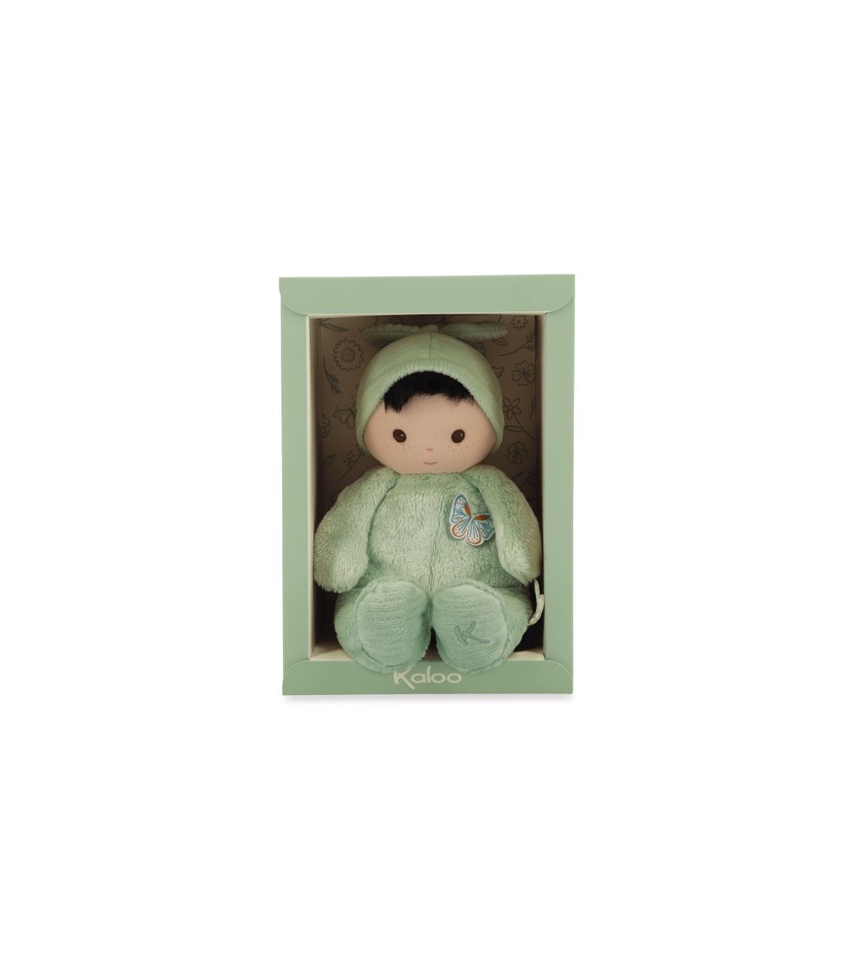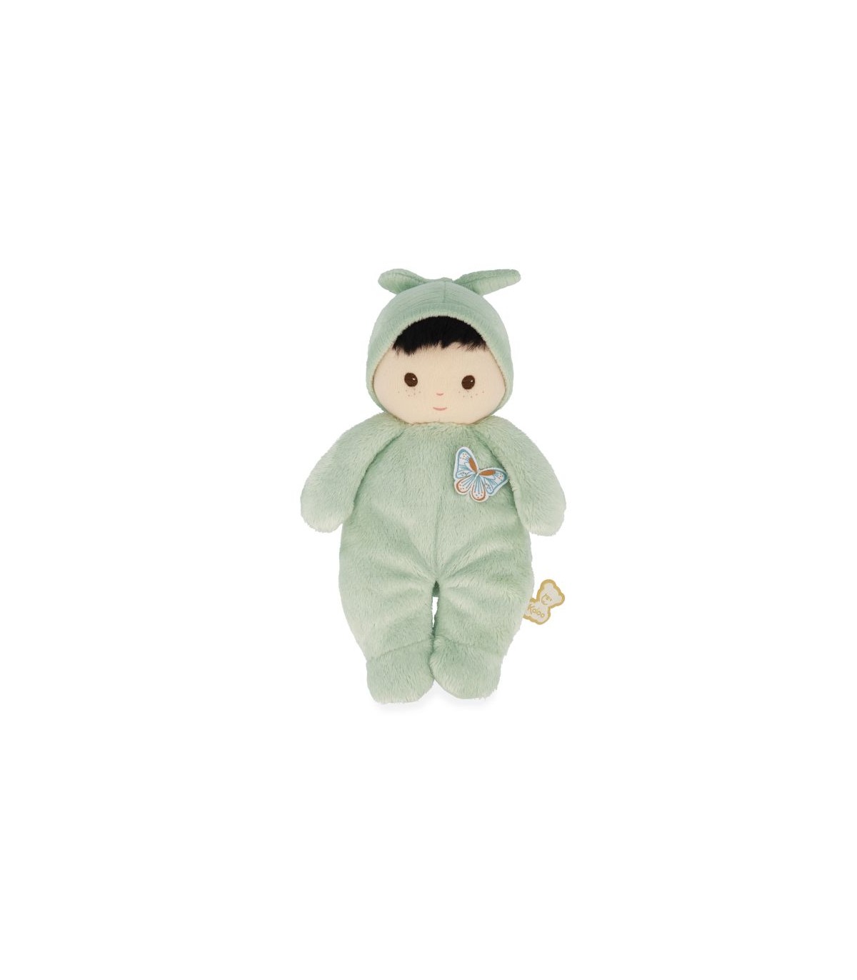 Descubra a Bebé Pilea, una adorable muñequita con pelo moreno, de 24 cm de altura, con un cuerpo de color verde y unos preciosos ojos marrones. Le gusta especialmente la planta Pilea, símbolo de prosperidad y abundancia, y es un amuleto de buena suerte. Su cuerpo es suave y blandito, y sus bracitos invitan a dar dulces abrazos. Una bonita mariposa adorna su torso, recordando la ligereza y la gracia de las flores. La etiqueta tejida con forma de mariposa es perfecta para invitar a los más pequeños a tocarla y así desarrollar su destreza. Está presente en todas nuestras tiernas bebés, como firma de la gama, como símbolo de conexión y singularidad. Se ha prestado especial atención a la elección de los materiales, ya que para fabricar esta encantadora bebé se ha utilizado un 90% de materiales reciclados. Lavable a máquina a 30°. Desde el nacimiento.