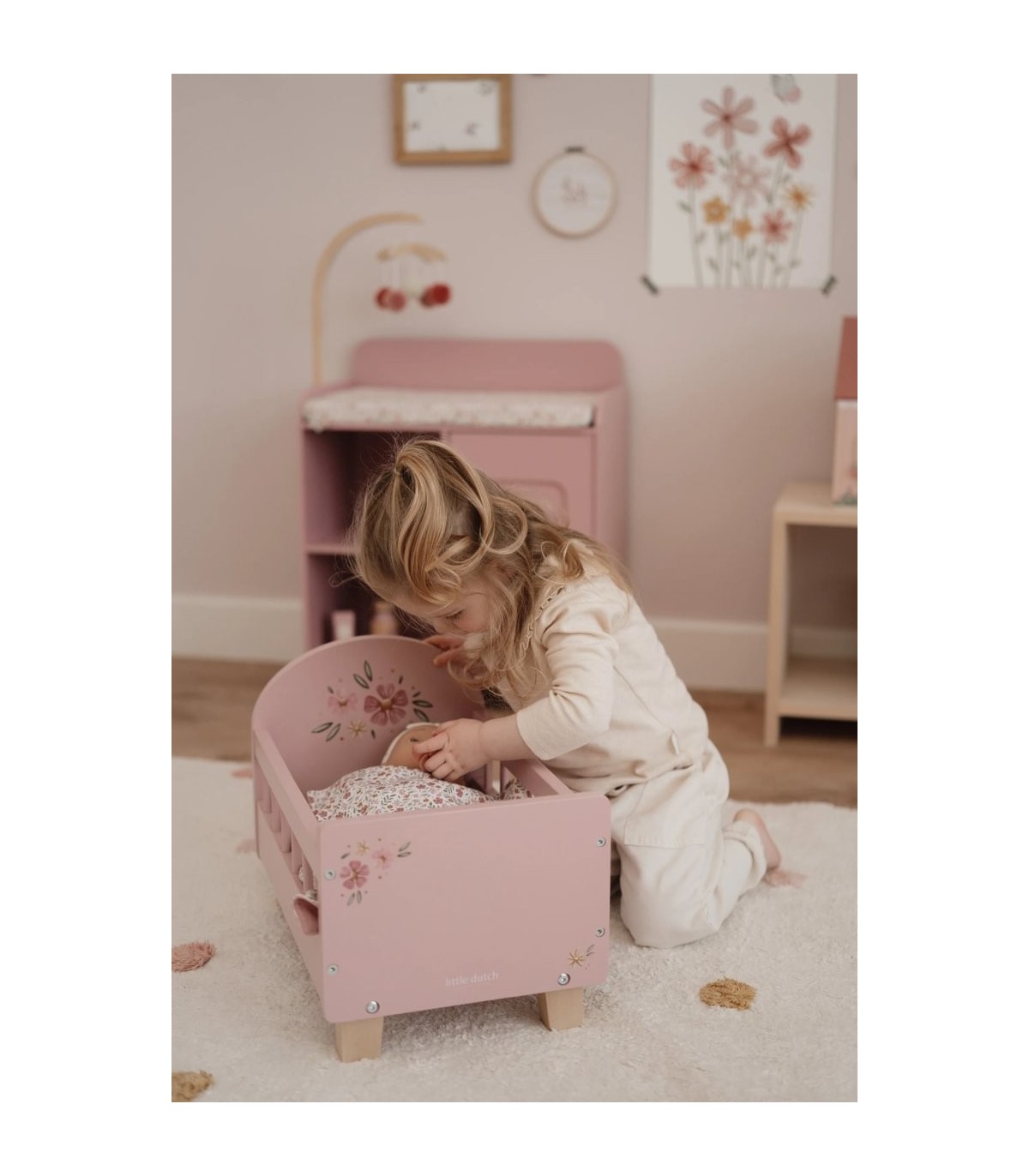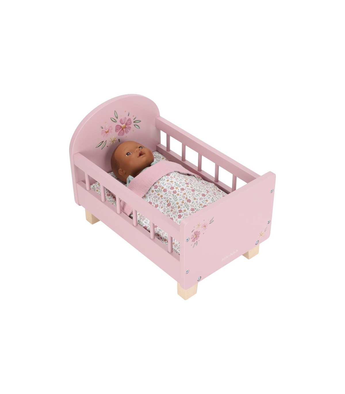 Dile buenas noches a tu adorable muñeca. Arropa a tu muñeca favorita, dale un beso y no olvides el cuento para dormir. Esta adorable camita está diseñada para que cuides de tu muñeca como si fueras un verdadero padre o madre. A los niños les encanta imitar a sus padres y jugar a ser mamá o papá cuidando a sus muñecas y peluches. El juego de roles fomenta la creatividad y la imaginación, y esta cama para muñecas es el juguete perfecto para fomentarlas. Está hecha de madera resistente y, para que sea aún más cómoda, incluye una almohada, una manta y una sábana con el encantador diseño de Flores y Mariposas. ¿A Anna, con su falda a juego de Flores y Mariposas, a Sophia o a Jake, a quien tu pequeño elegirá para dormir en esta adorable cama?
