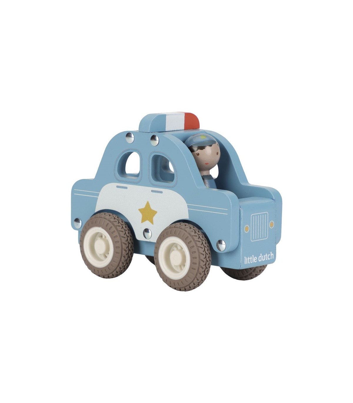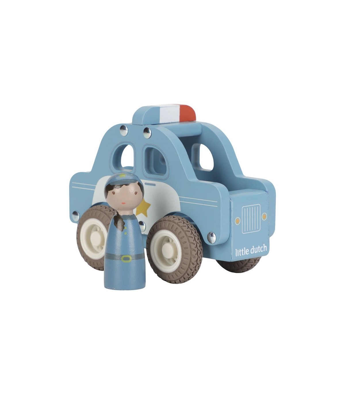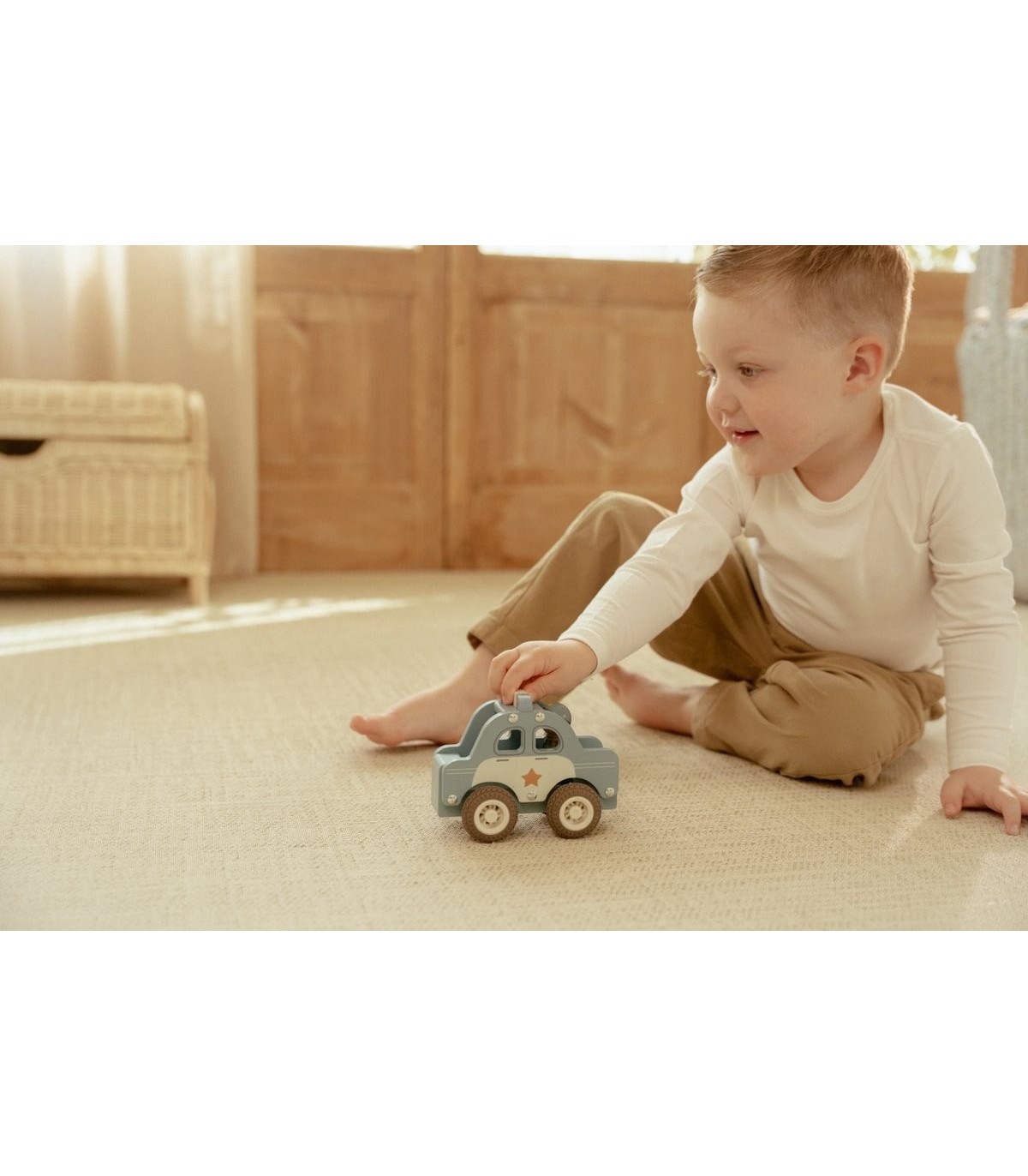 ¿Emergencia? ¡El coche de policía de madera corre a toda velocidad a la escena del crimen! Con ruedas de goma para una conducción suave y un policía robusto al volante, estás listo para mantener la ciudad segura. Recrea emocionantes persecuciones y mete a los criminales entre rejas. Este coche de policía de juguete es perfecto para juegos de rol y combina a la perfección con la comisaría de madera. ¿A quién ayudarás hoy en la ciudad?