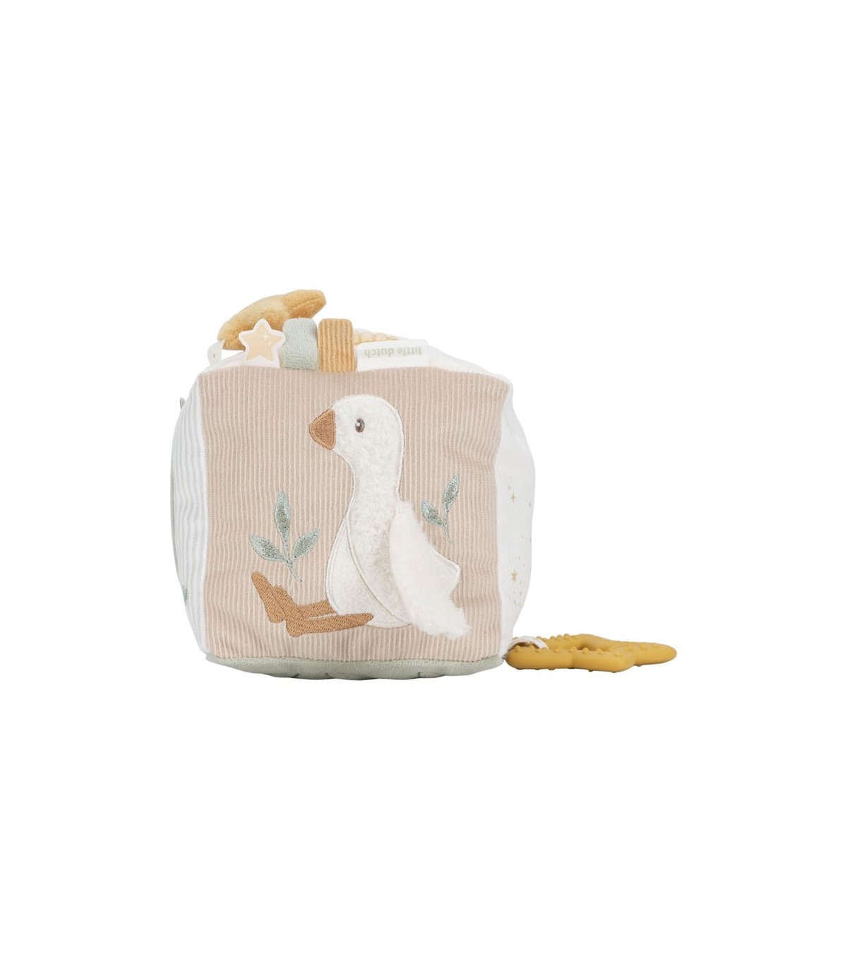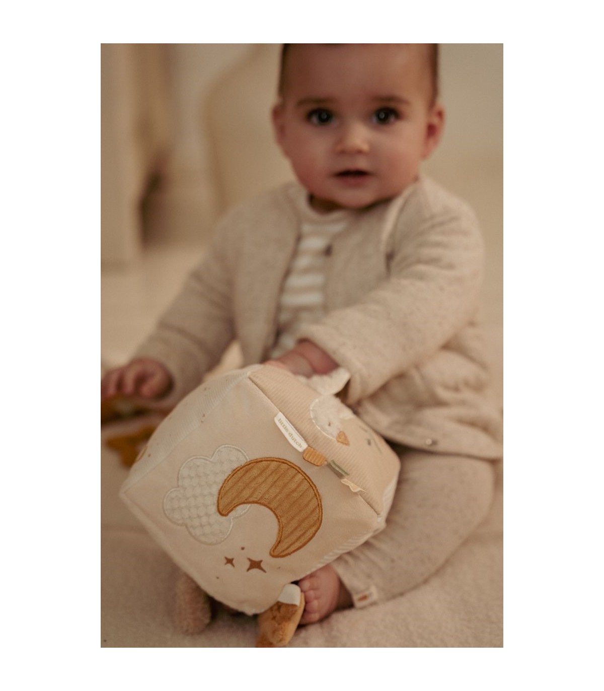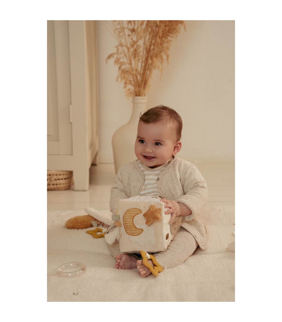El Cubo de Actividades Newborn Naturals está lleno de sorpresas para los pequeños exploradores. Cada lado invita al juego con telas suaves, sonidos crujientes, etiquetas juguetonas y un espejo seguro para mirarse. Estimula los sentidos y fomenta la curiosidad. El cubo es perfecto para agarrar, sostener y girar, ayudando a desarrollar la motricidad fina de forma lúdica. Con sus tonos naturales y relajantes, se integra a la perfección en cualquier habitación infantil. Un compañero lúdico que combina relajación y descubrimiento. ¡Para diversión sin fin, día tras día!