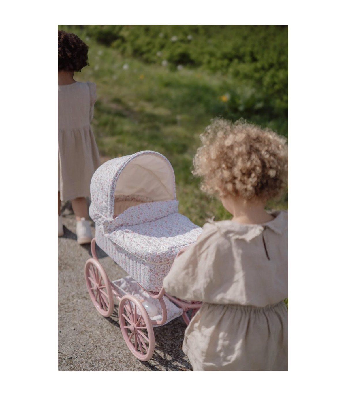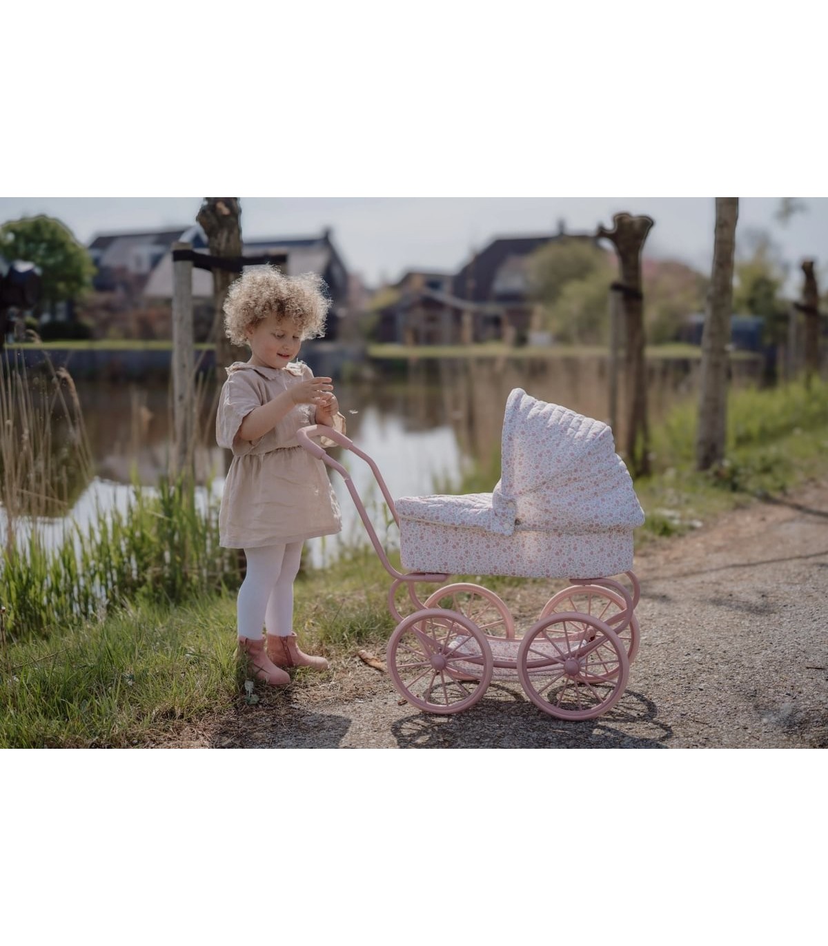 ¡Disfruta de encantadores paseos con este robusto cochecito de metal para muñecas y dale a tu muñeca el paseo de su vida! Gracias a sus cuatro ruedas grandes, este cochecito se mueve de forma suave y estable, perfecto tanto para interiores como para exteriores. En la parte inferior, encontrarás una práctica cesta para guardar los accesorios de tu muñeca siempre a mano. El armazón rosa y las suaves asas completan este elegante cochecito.Medidas carro: 74,5 x 33,5\nx 69 cm